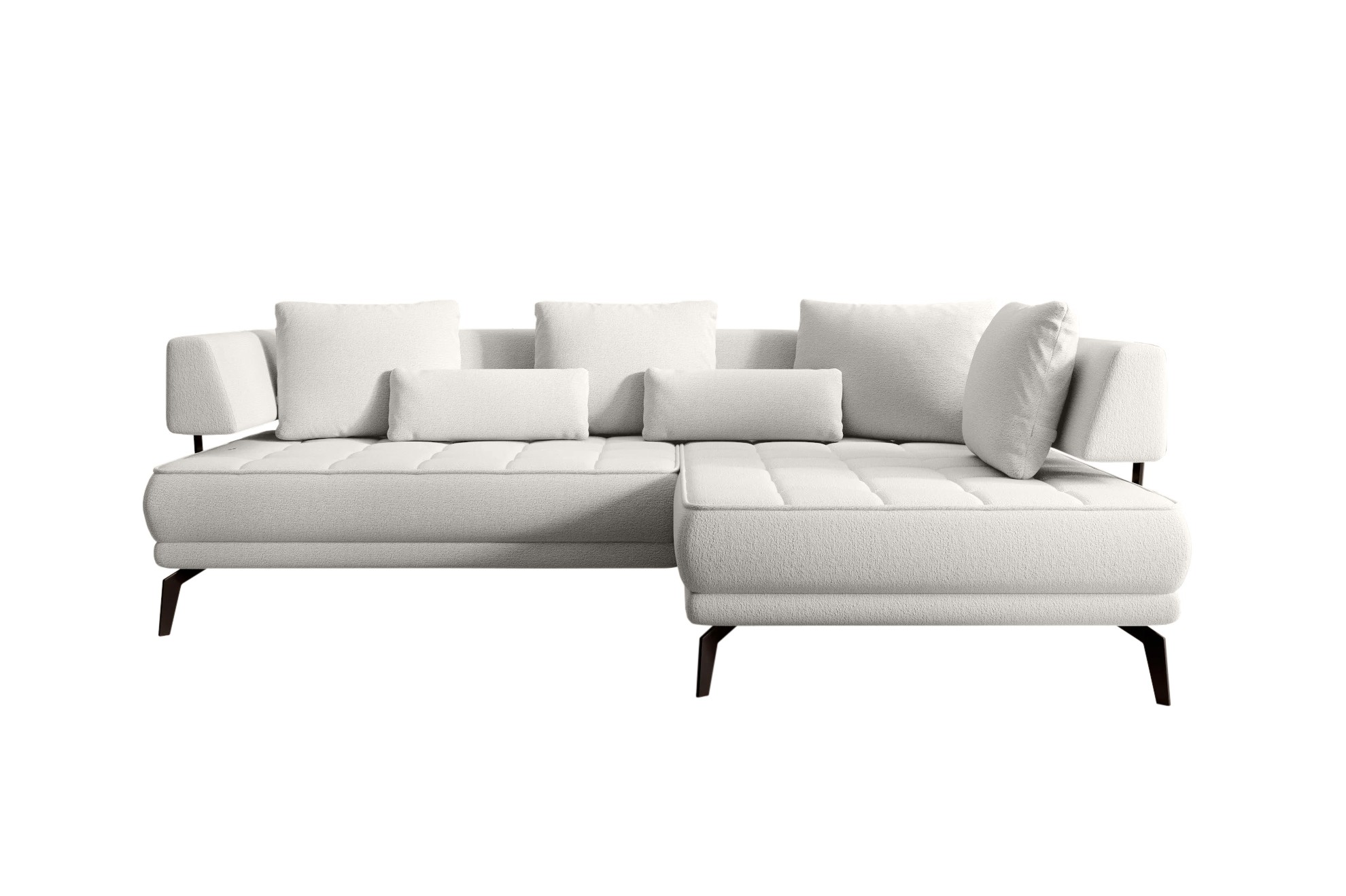 Stylowe pikowane siedzisko i wysokie metalowe nóżki nadają narożnikowi lekko loftowy, a jednocześnie nowoczesny charakter.