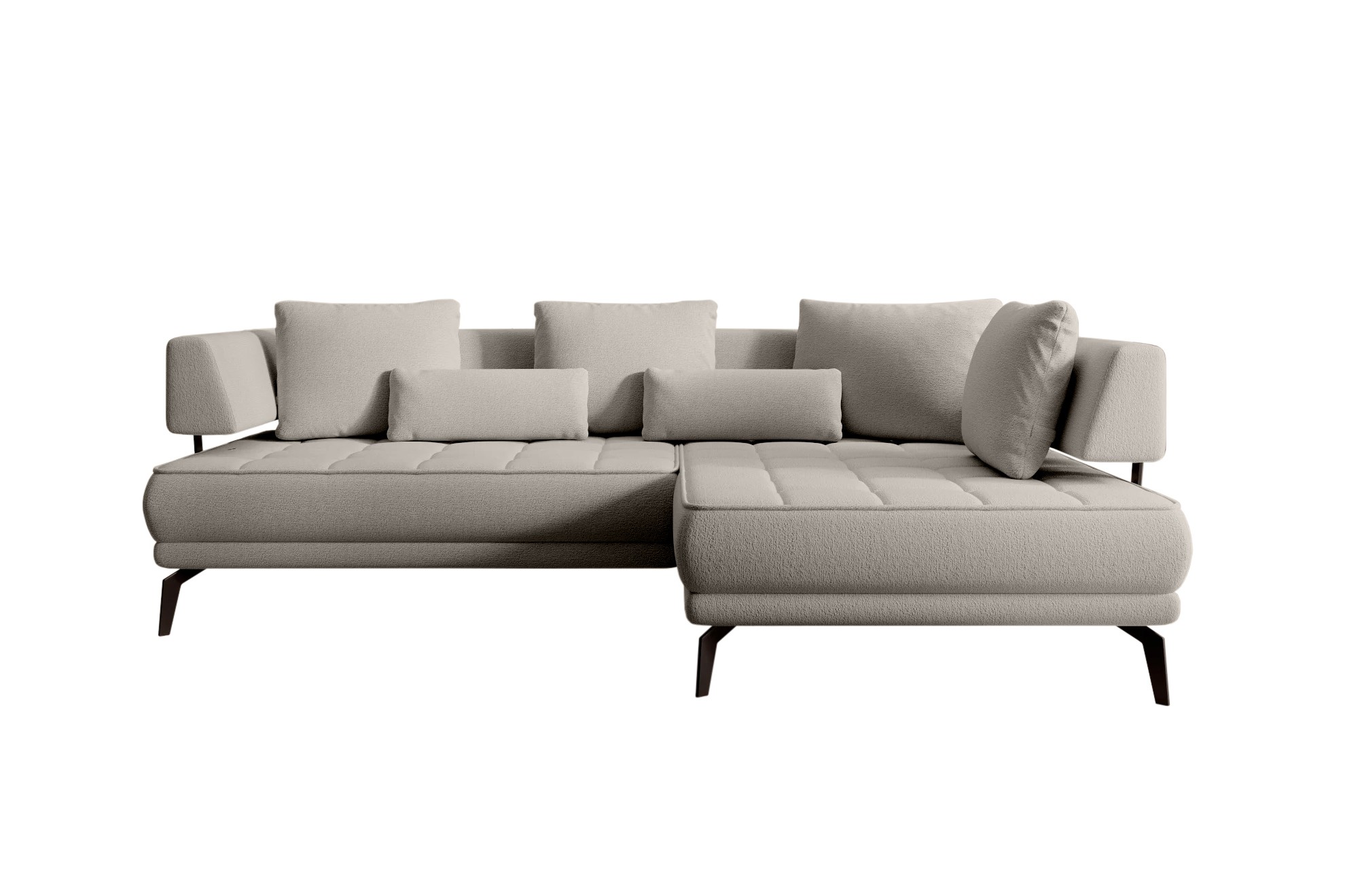 Stylowe pikowane siedzisko i wysokie metalowe nóżki nadają narożnikowi lekko loftowy, a jednocześnie nowoczesny charakter.