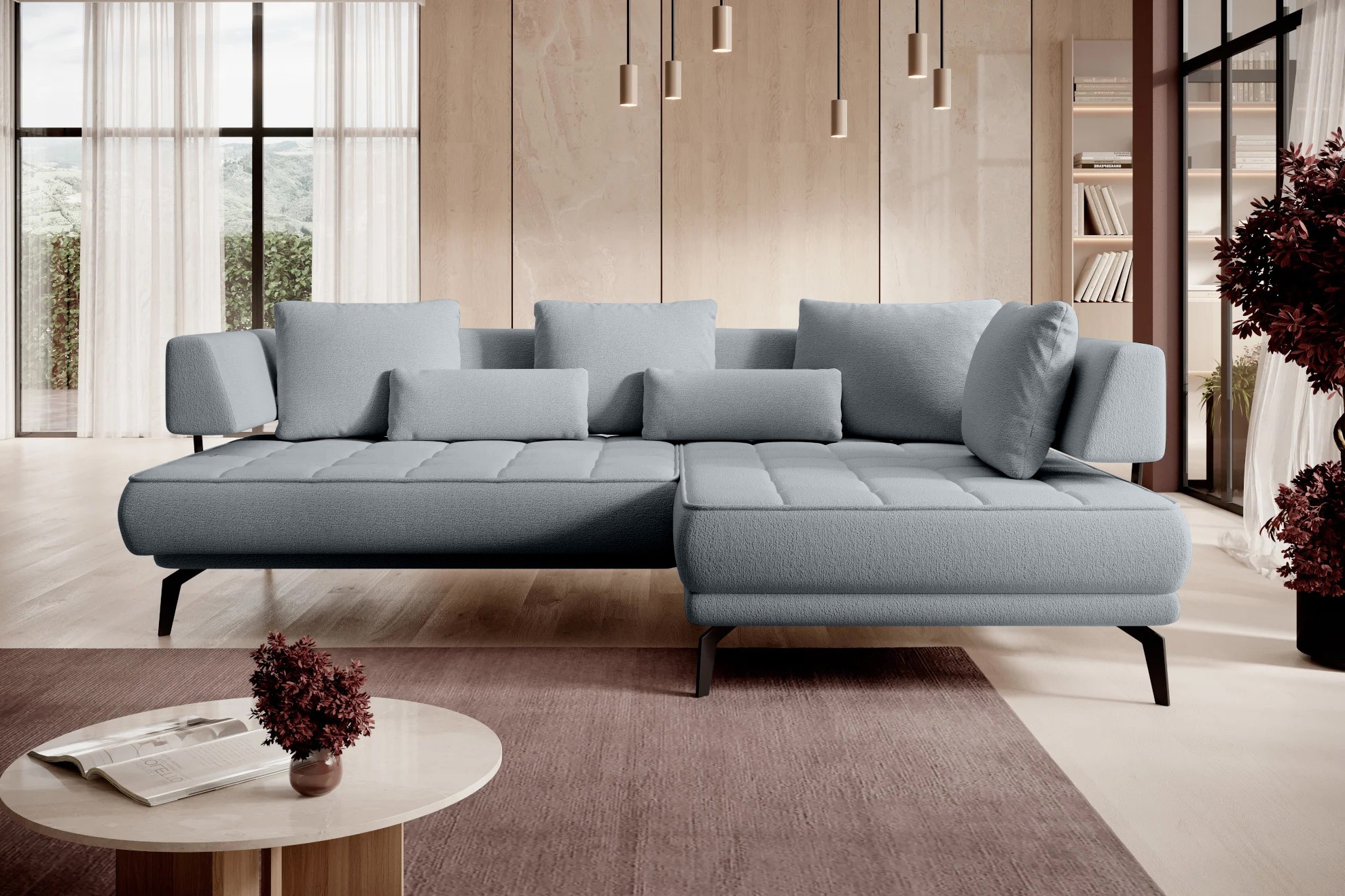 Stylowe pikowane siedzisko i wysokie metalowe nóżki nadają narożnikowi lekko loftowy, a jednocześnie nowoczesny charakter.