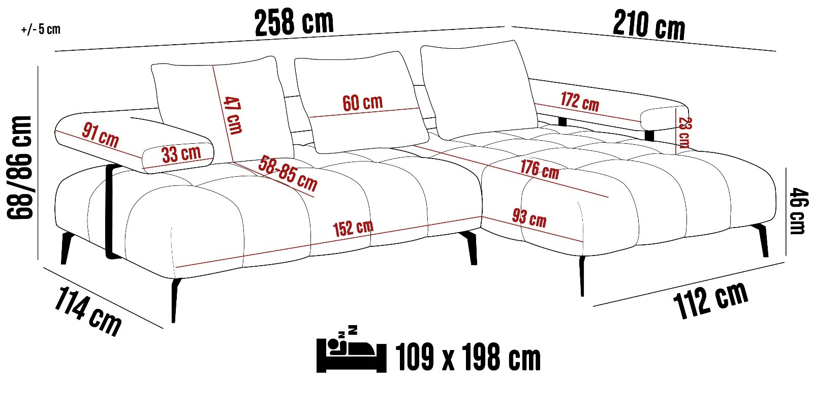 258x210x68/86 cm