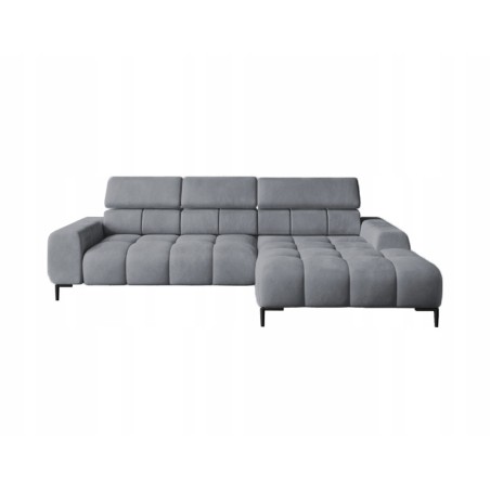 Pikowane siedzisko nadaje narożnikowi nowoczesnego charakteru, a wysokie metalowe nóżki (czarne lub złote) w stylu loftowym dodają mu lekkości i elegancji.