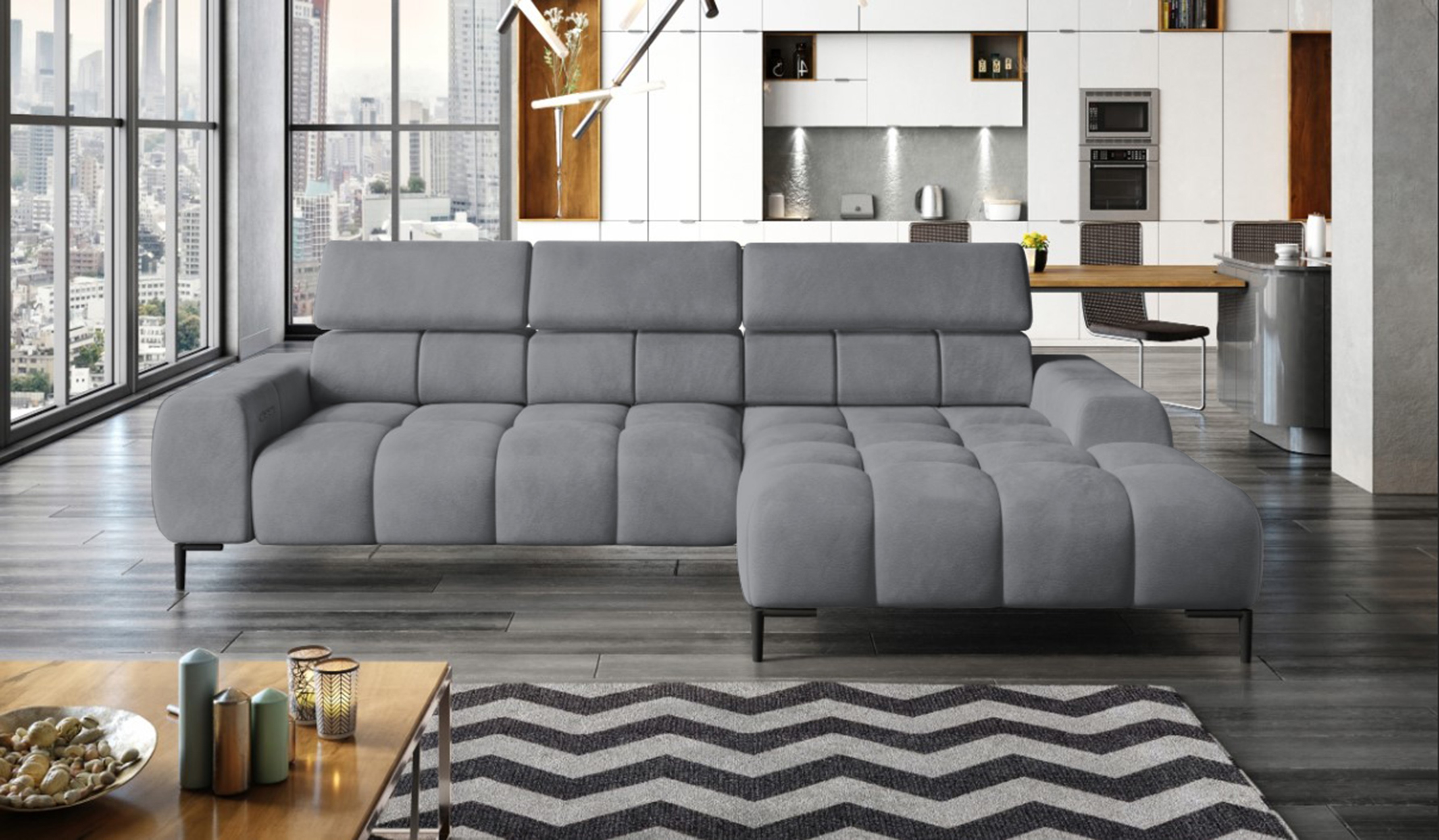 Narożnik PLAZA MINI to połączenie elegancji, nowoczesnych rozwiązań i funkcjonalności, które spełnią oczekiwania nawet najbardziej wymagających użytkowników.