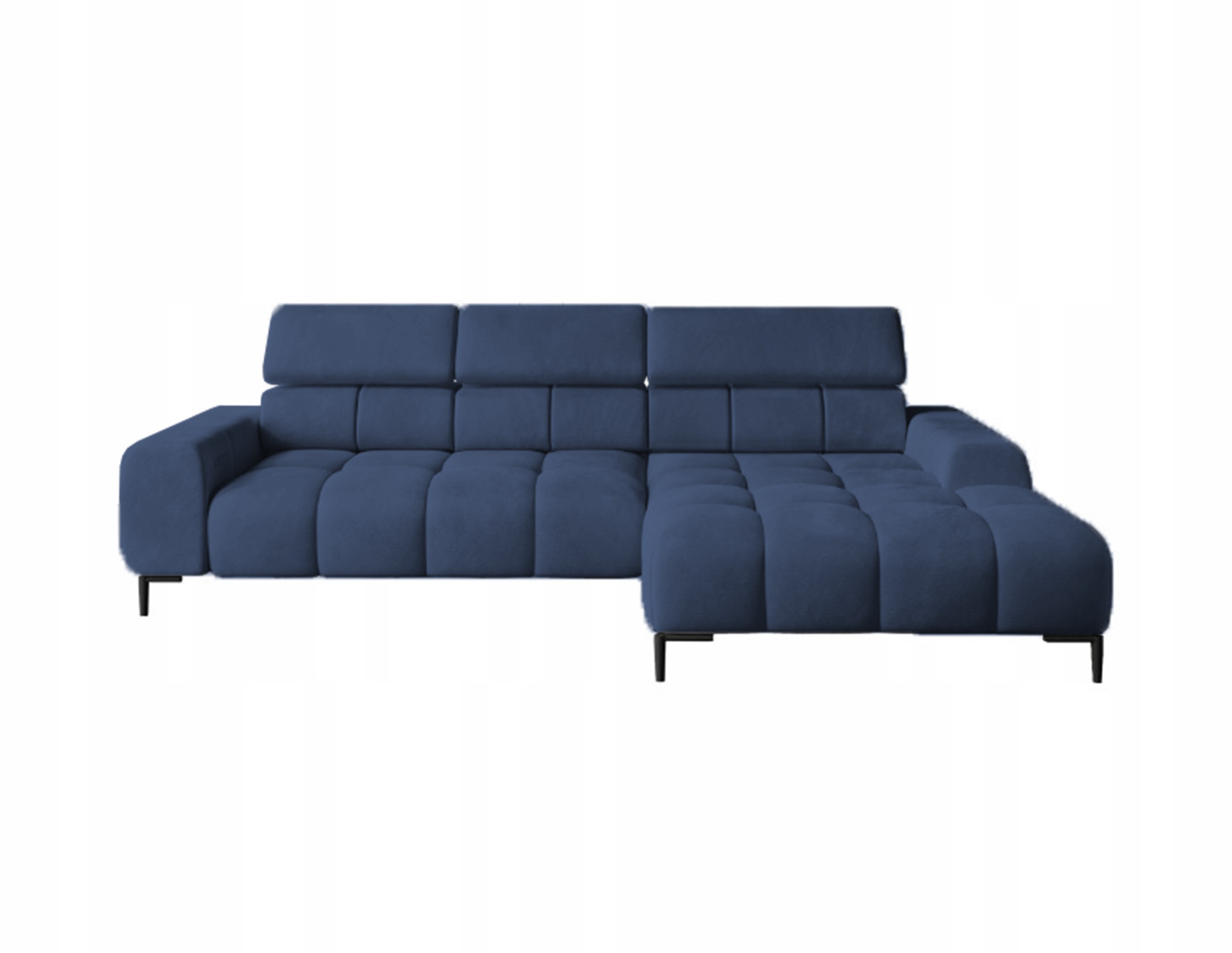 Pikowane siedzisko nadaje narożnikowi nowoczesnego charakteru, a wysokie metalowe nóżki (czarne lub złote) w stylu loftowym dodają mu lekkości i elegancji.