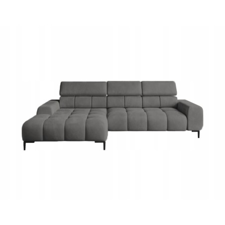 Pikowane siedzisko nadaje narożnikowi nowoczesnego charakteru, a wysokie metalowe nóżki (czarne lub złote) w stylu loftowym dodają mu lekkości i elegancji.
