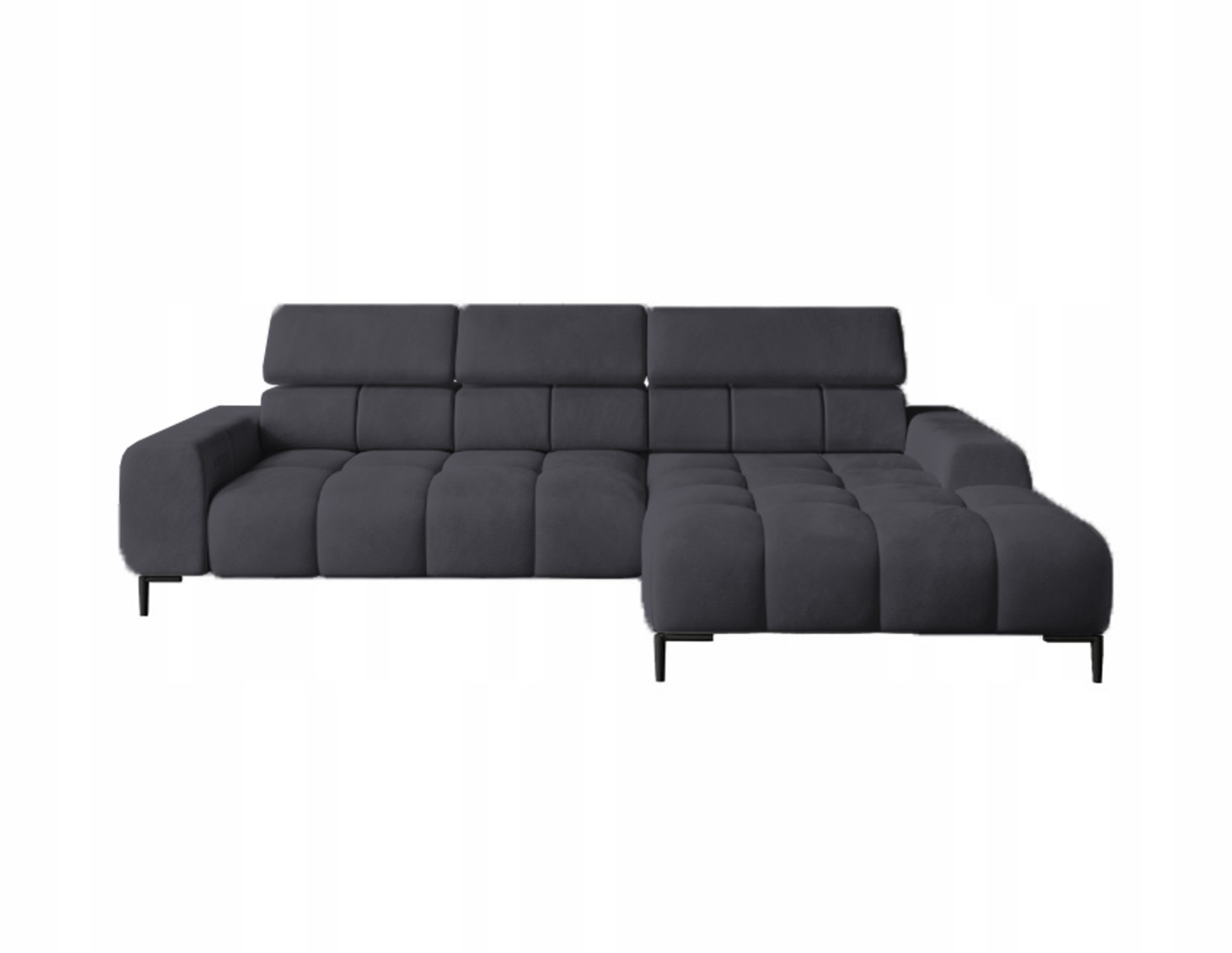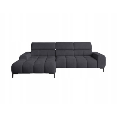 Pikowane siedzisko nadaje narożnikowi nowoczesnego charakteru, a wysokie metalowe nóżki (czarne lub złote) w stylu loftowym dodają mu lekkości i elegancji.