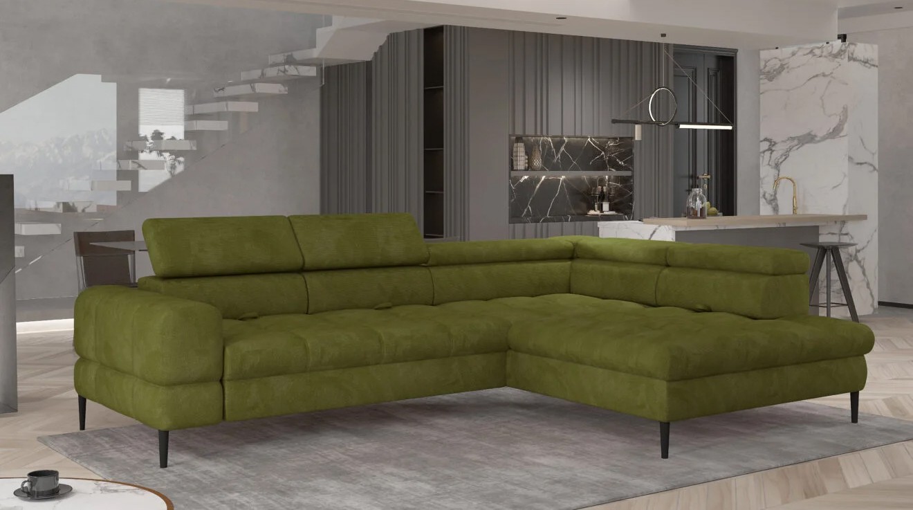 Model wykonano na bazie sprężyn falistych oraz wysokiej jakości pianki, co gwarantuje trwałość, sprężystość i odporność na odkształcenia. Narożnik dostępny jest w wersji lewo- oraz prawostronnej, co ułatwia dopasowanie go do układu pomieszczenia.