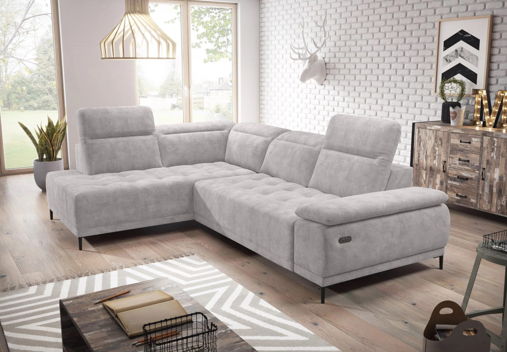 Narożnik FOCUS L z elektryczną regulacją w tkaninie SALVADOR 15 WERSAL