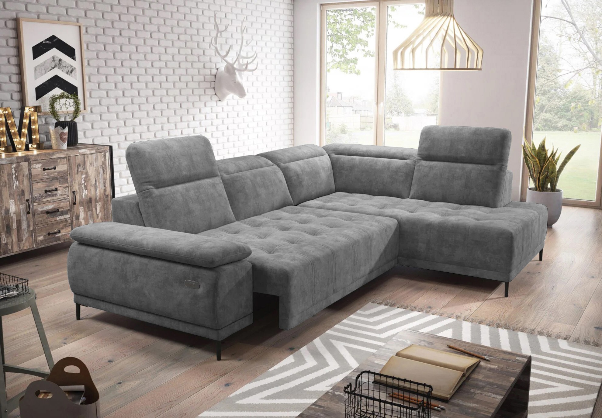 Narożnik FOCUS L z elektryczną regulacją w tkaninie SALVADOR 15 WERSAL