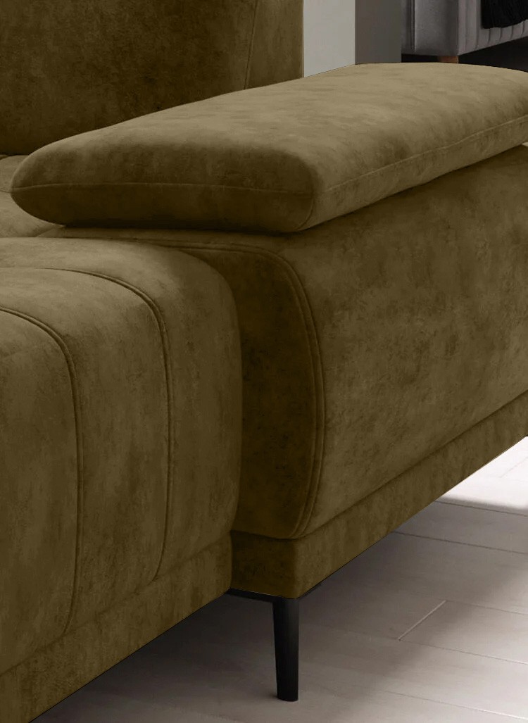 Dodatkowo narożnik wyposażony jest w 5 regulowanych zagłówków z możliwością blokady w dowolnej pozycji.