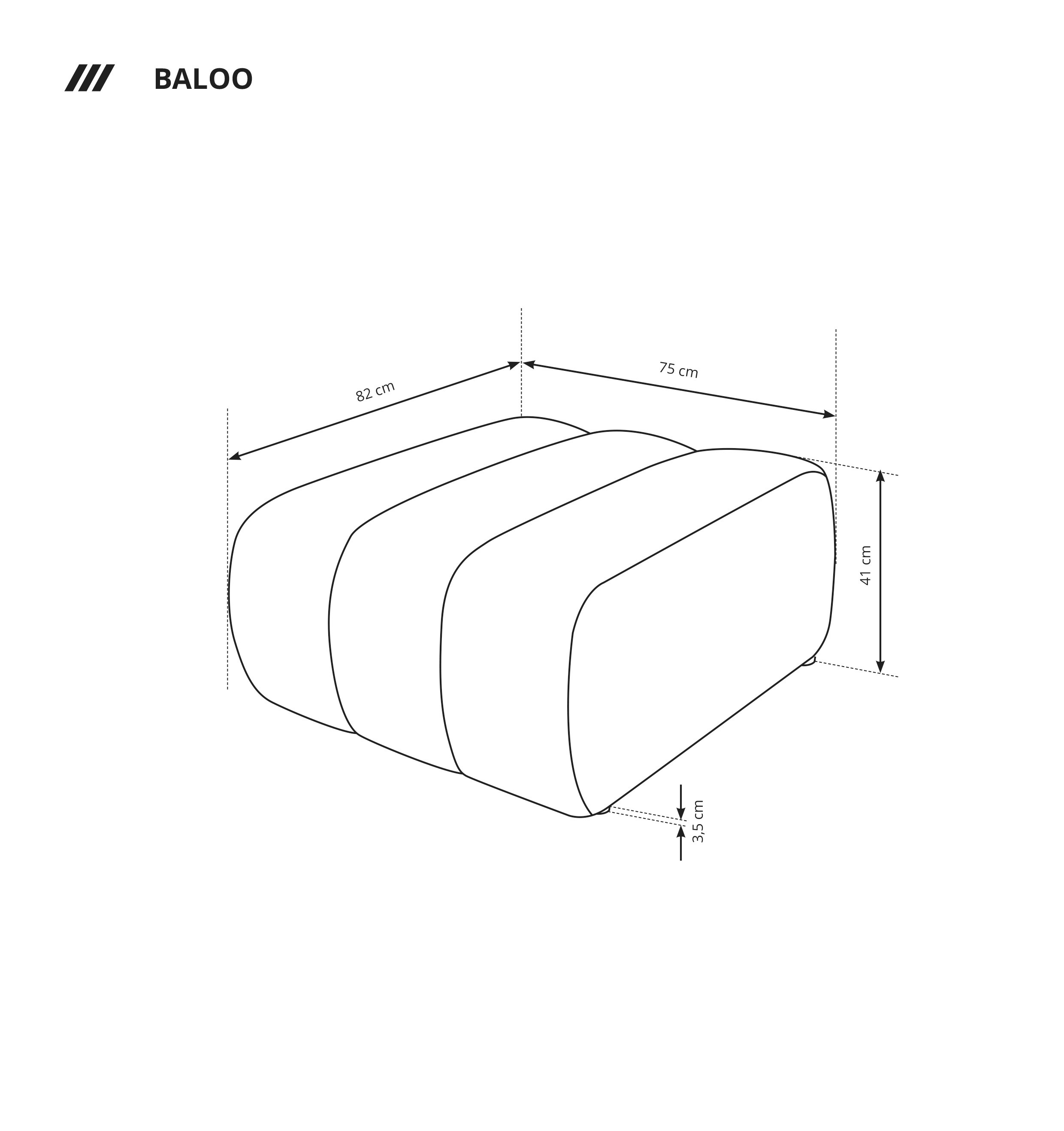 Dzięki kompaktowym wymiarom 82 × 75 × 41 cm oraz niewielkiej wadze (ok. 21,5 kg) pufa BALOO jest łatwa do przenoszenia i doskonale dopasuje się do każdego wnętrza.