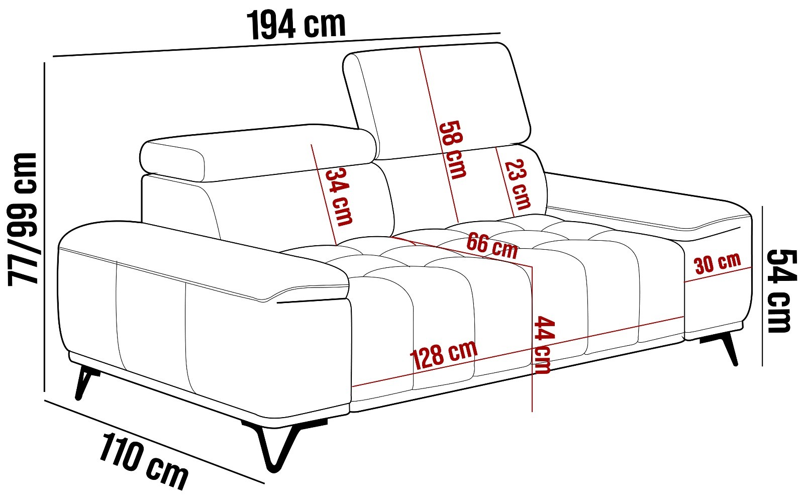 Sofa PALLADIO 2 osobowa z regulowanymi zagłówkami MONOLITH 77 WERSAL