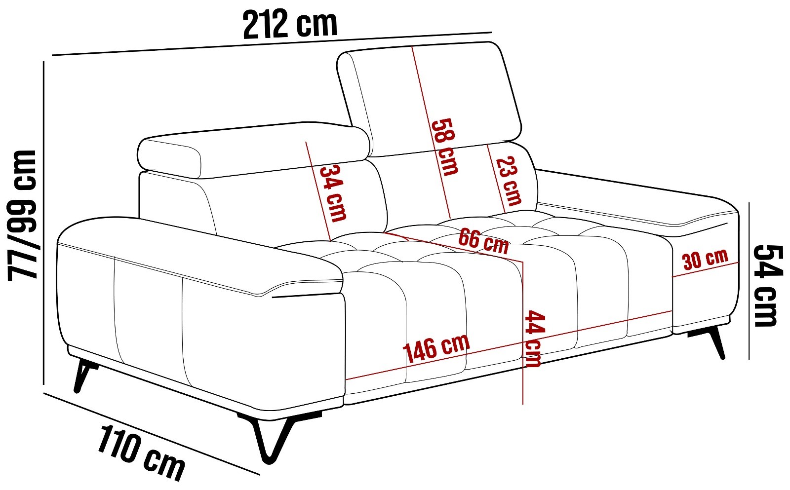 Sofa PALLADIO 2 osobowa z regulowanymi zagłówkami MONOLITH 77 WERSAL