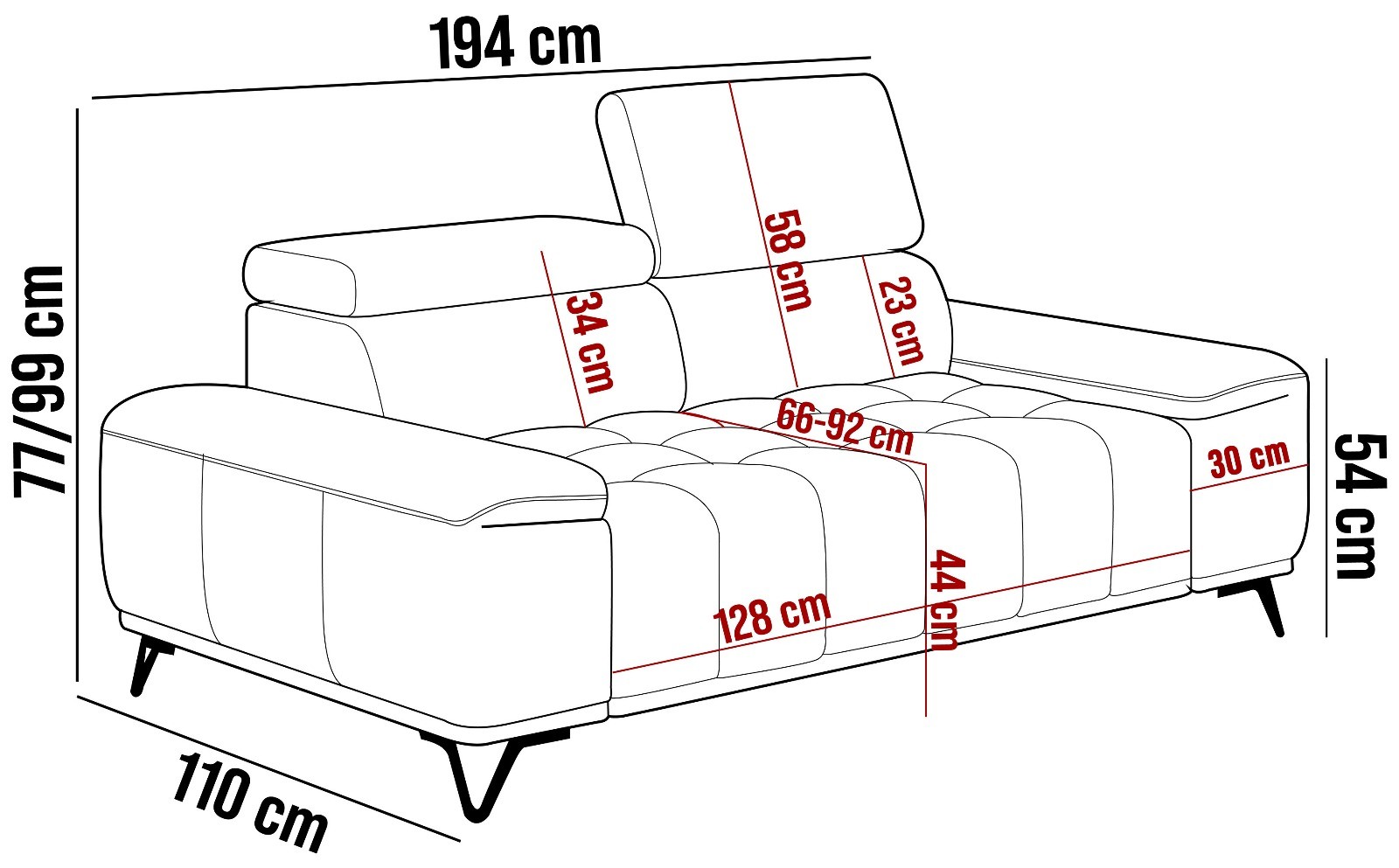 194x110x77/99 cm