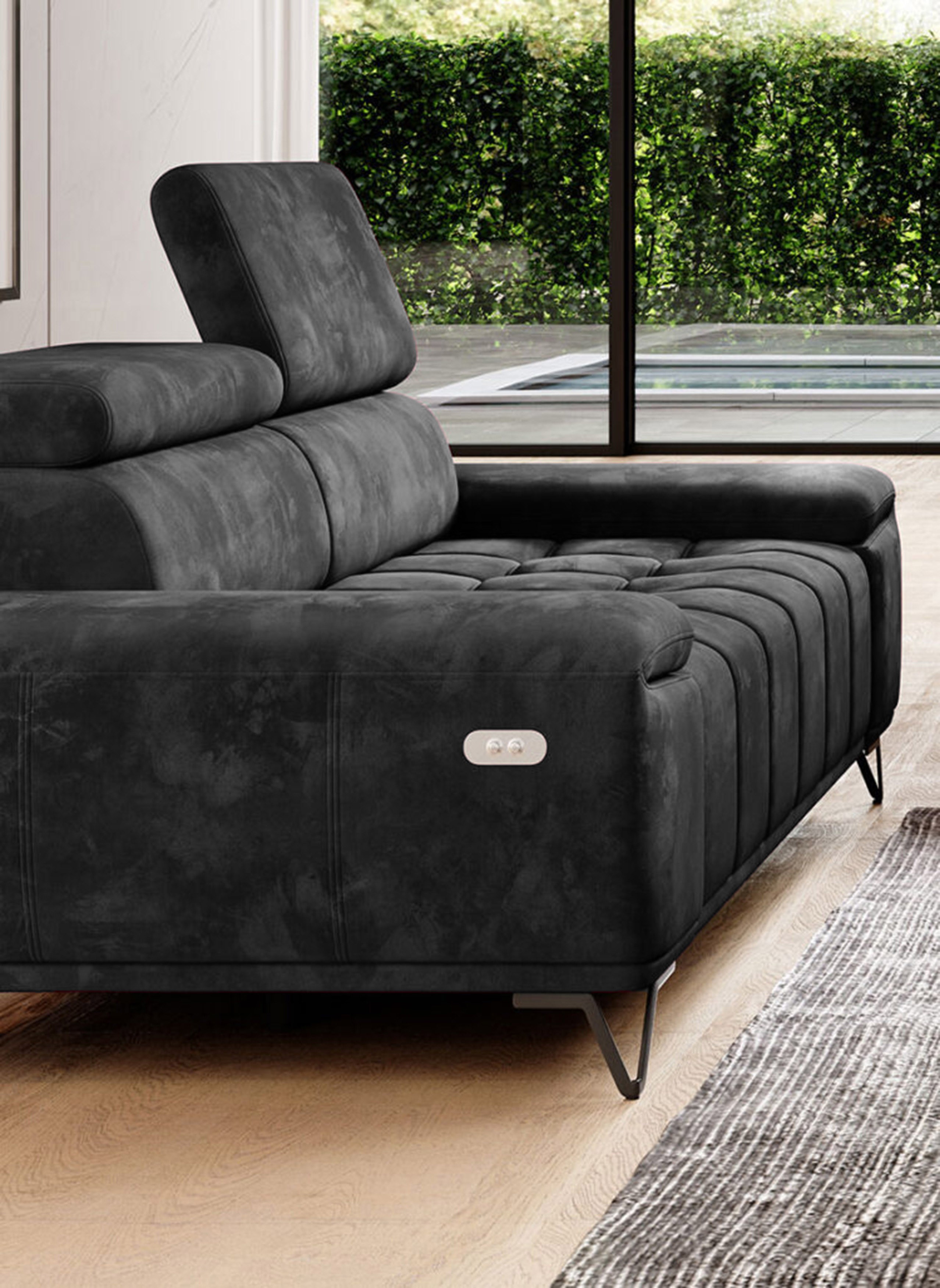 Sofa PALLADIO 3 osobowa z elektrycznym systemem rozkładania siedziska regulowane zagłówki MONOLITH 37 WERSAL