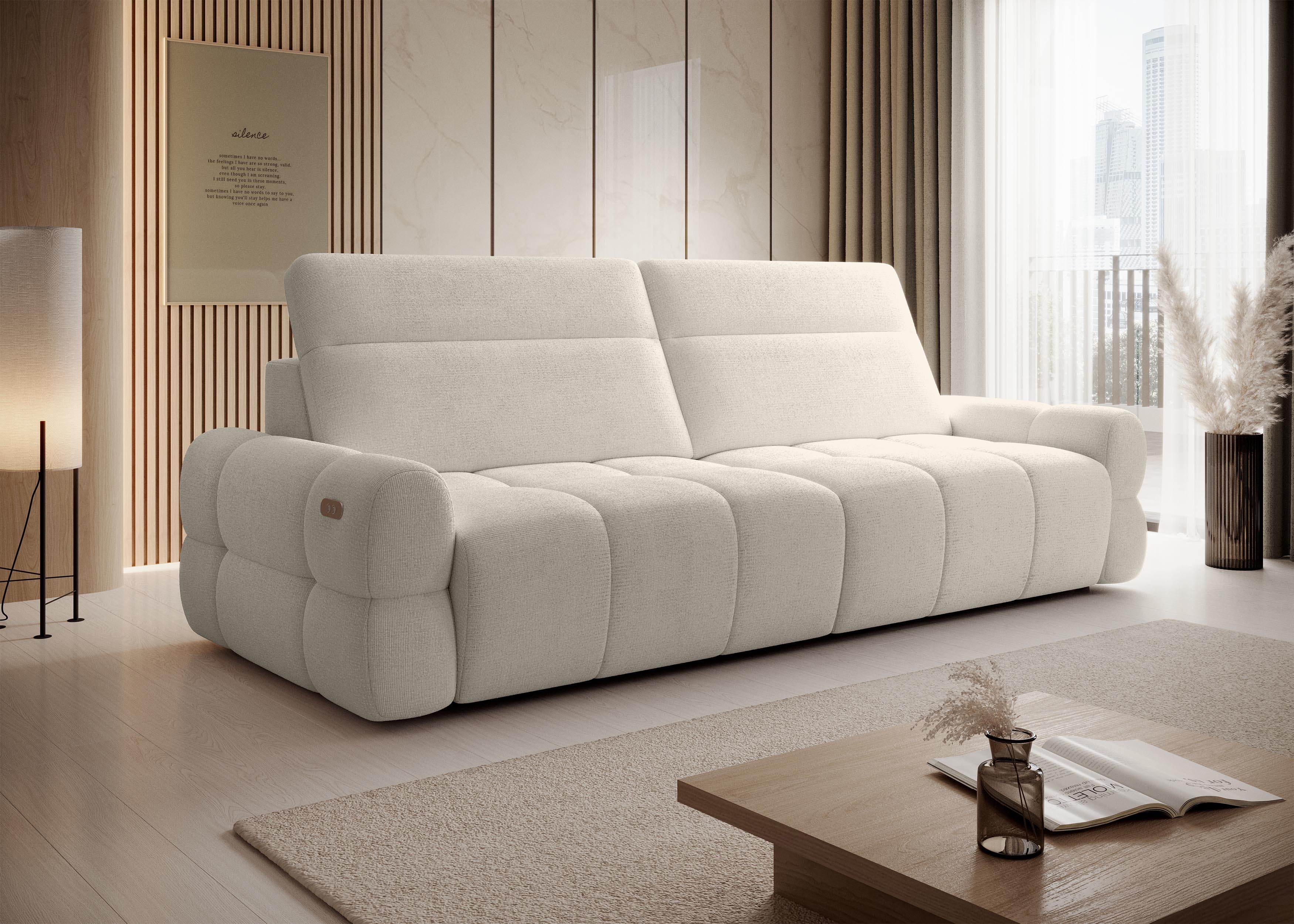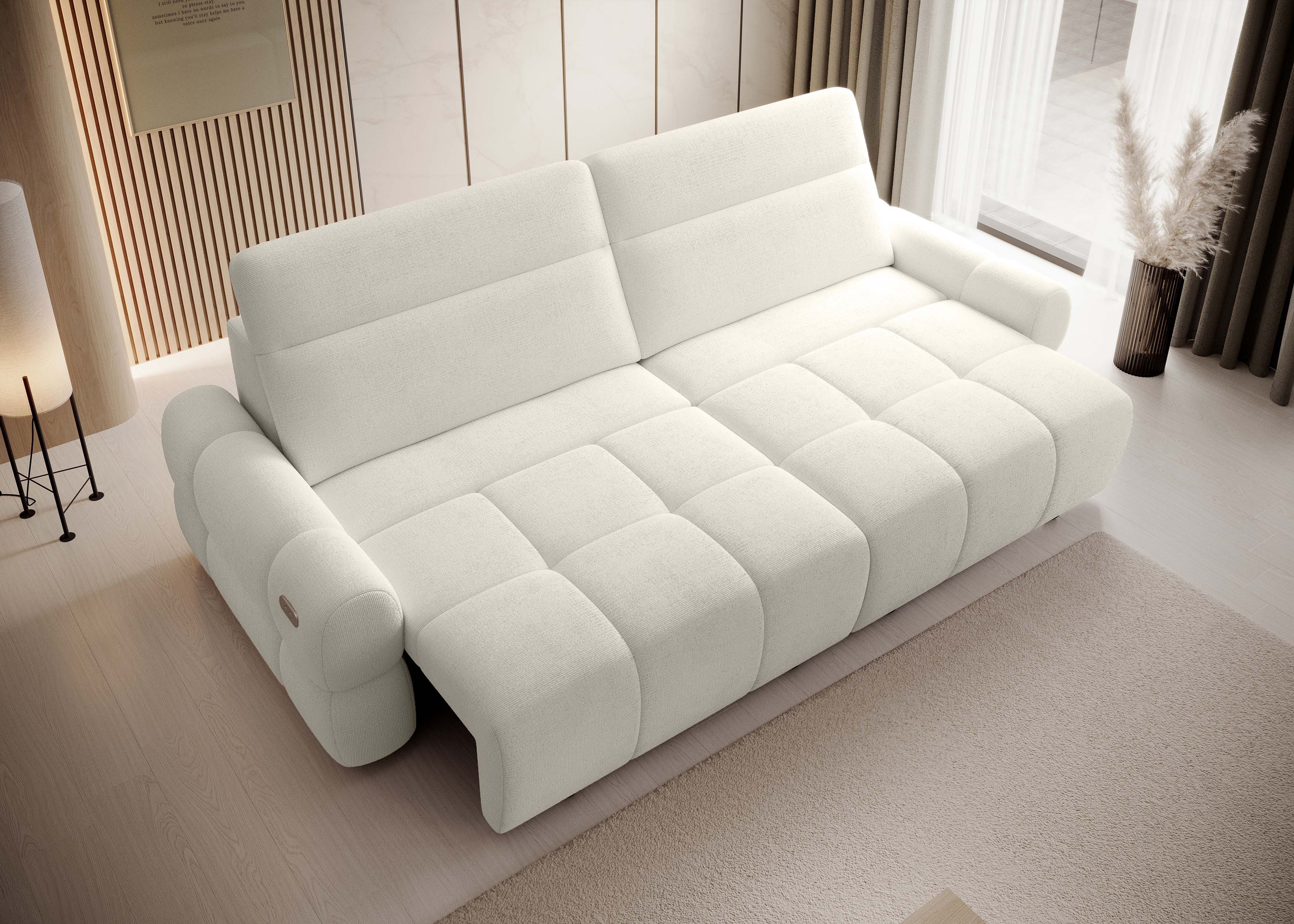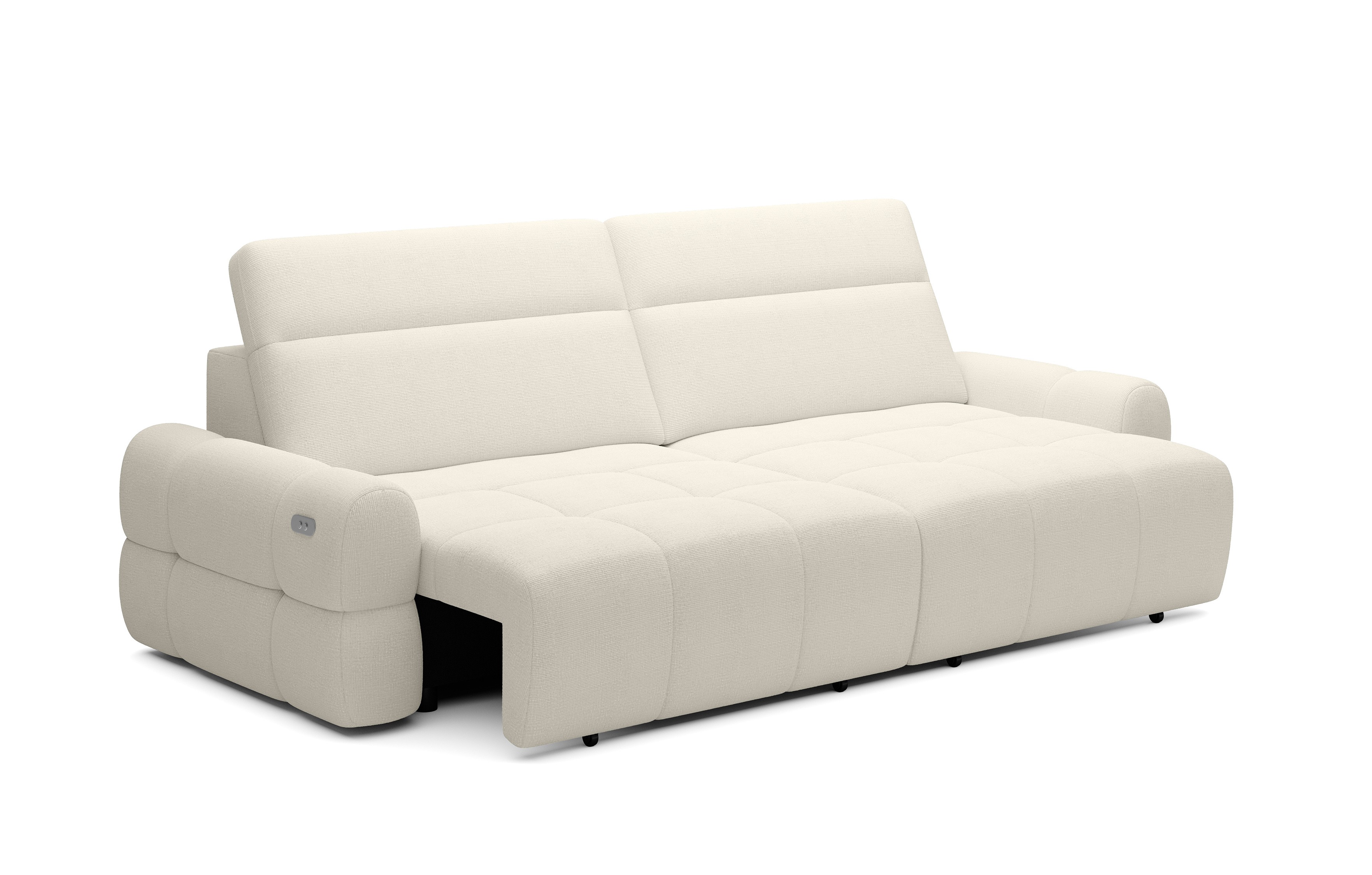 Wyposażona w elektrycznie rozkładaną funkcję spania, regulowane zagłówki oraz regulowaną głębokość siedziska, sofa zapewnia wyjątkowy komfort w codziennym użytkowaniu.