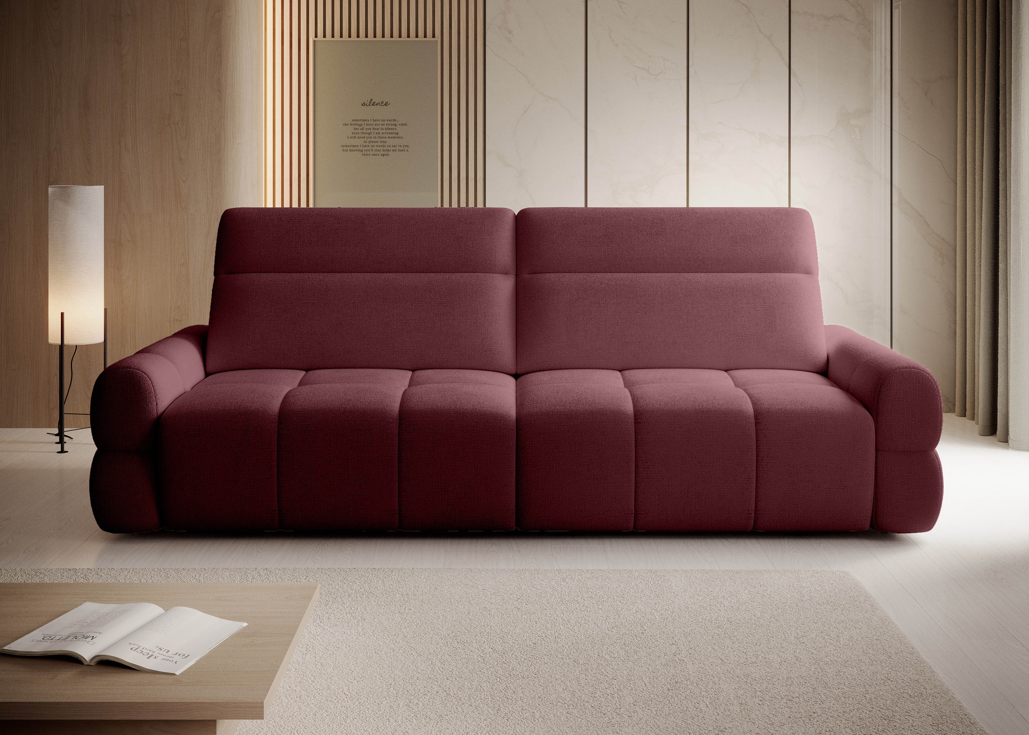 Wyposażona w elektrycznie rozkładaną funkcję spania, regulowane zagłówki oraz regulowaną głębokość siedziska, sofa zapewnia wyjątkowy komfort w codziennym użytkowaniu.
