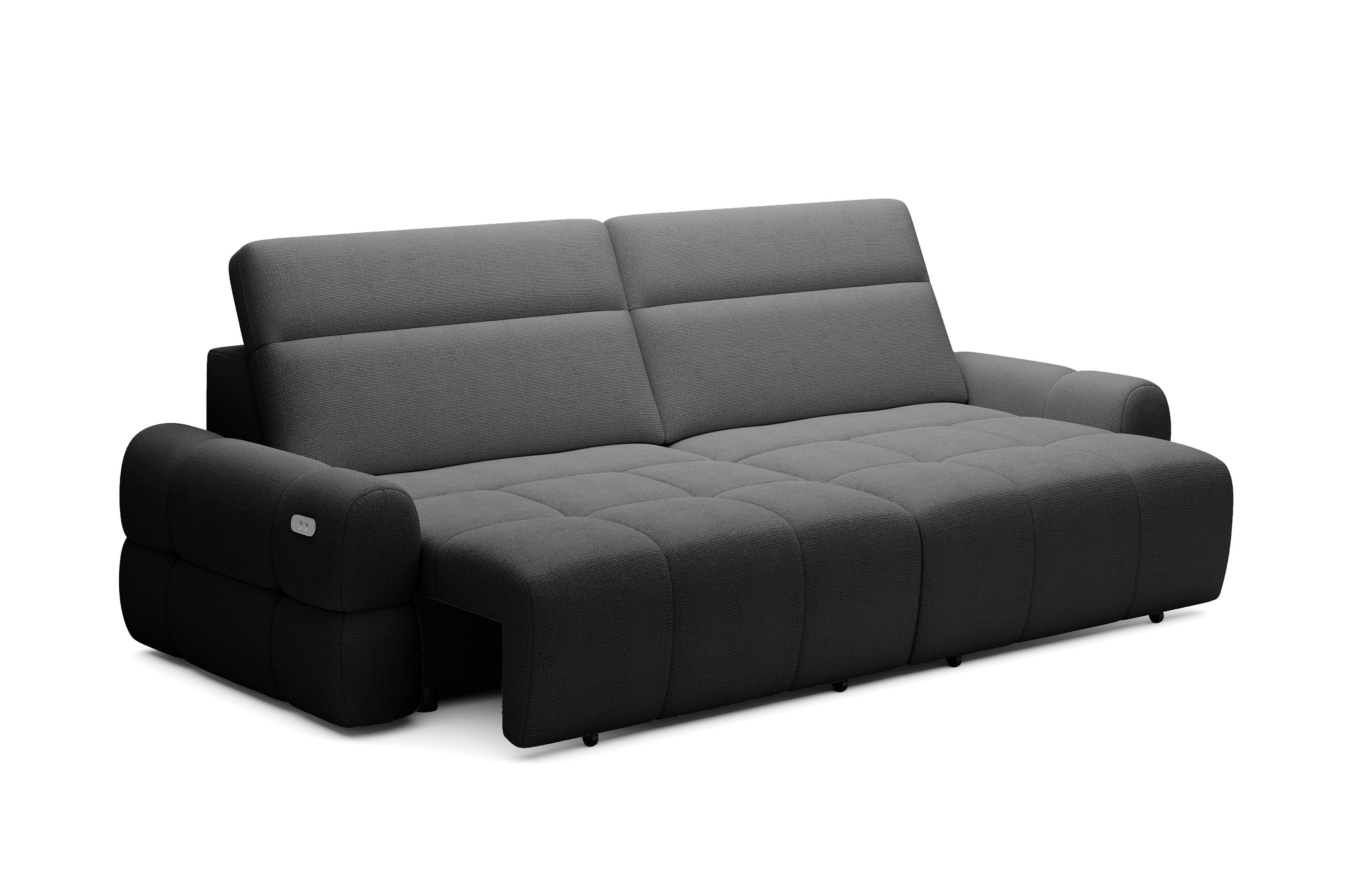 Wyposażona w elektrycznie rozkładaną funkcję spania, regulowane zagłówki oraz regulowaną głębokość siedziska, sofa zapewnia wyjątkowy komfort w codziennym użytkowaniu.