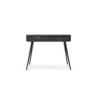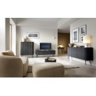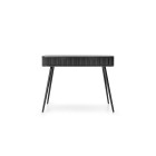 Toaletka z kolekcji ZURI to połączenie klasycznej elegancji z nowoczesnym designem. Zaokrąglone boki oraz dekoracyjne ryflowania na froncie i korpusie sprawiają, że mebel wyróżnia się na tle innych propozycji i przyciąga uwagę miłośników stylowych wnętrz. Smukłe drewniane nogi nadają bryle lekkości oraz ułatwiają utrzymanie czystości pod meblem, podkreślając jego nowoczesny charakter.