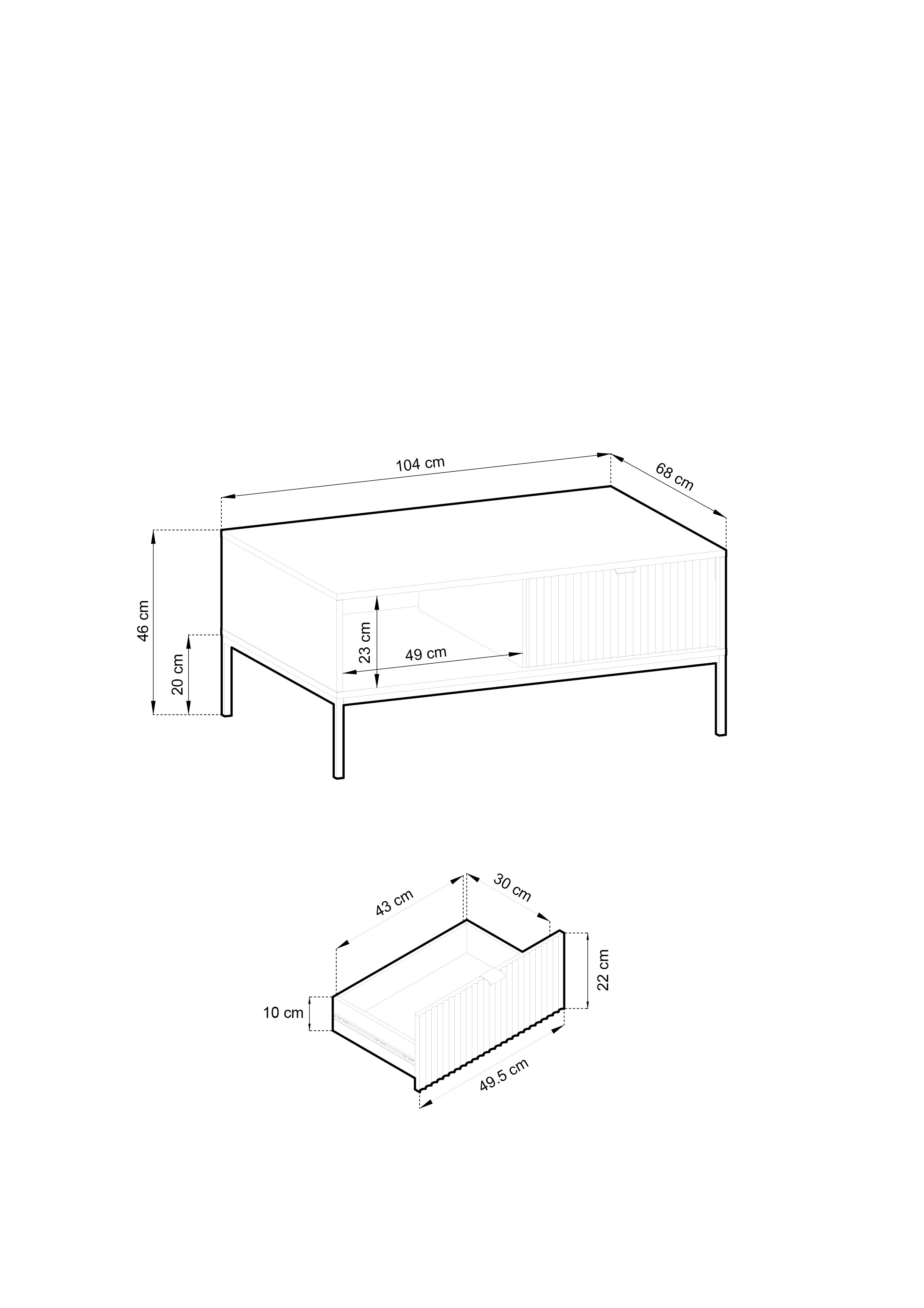 Stolik kawowy NAYA to połączenie elegancji, funkcjonalności i nowoczesnego designu. Dzięki przestronnemu blatowi oraz praktycznej szufladzie doskonale sprawdzi się w salonie, biurze lub stylowej przestrzeni recepcyjnej. Nowoczesna kolorystyka w zestawieniu ze złotym uchwytem nadaje meblowi luksusowego i ponadczasowego charakteru.
