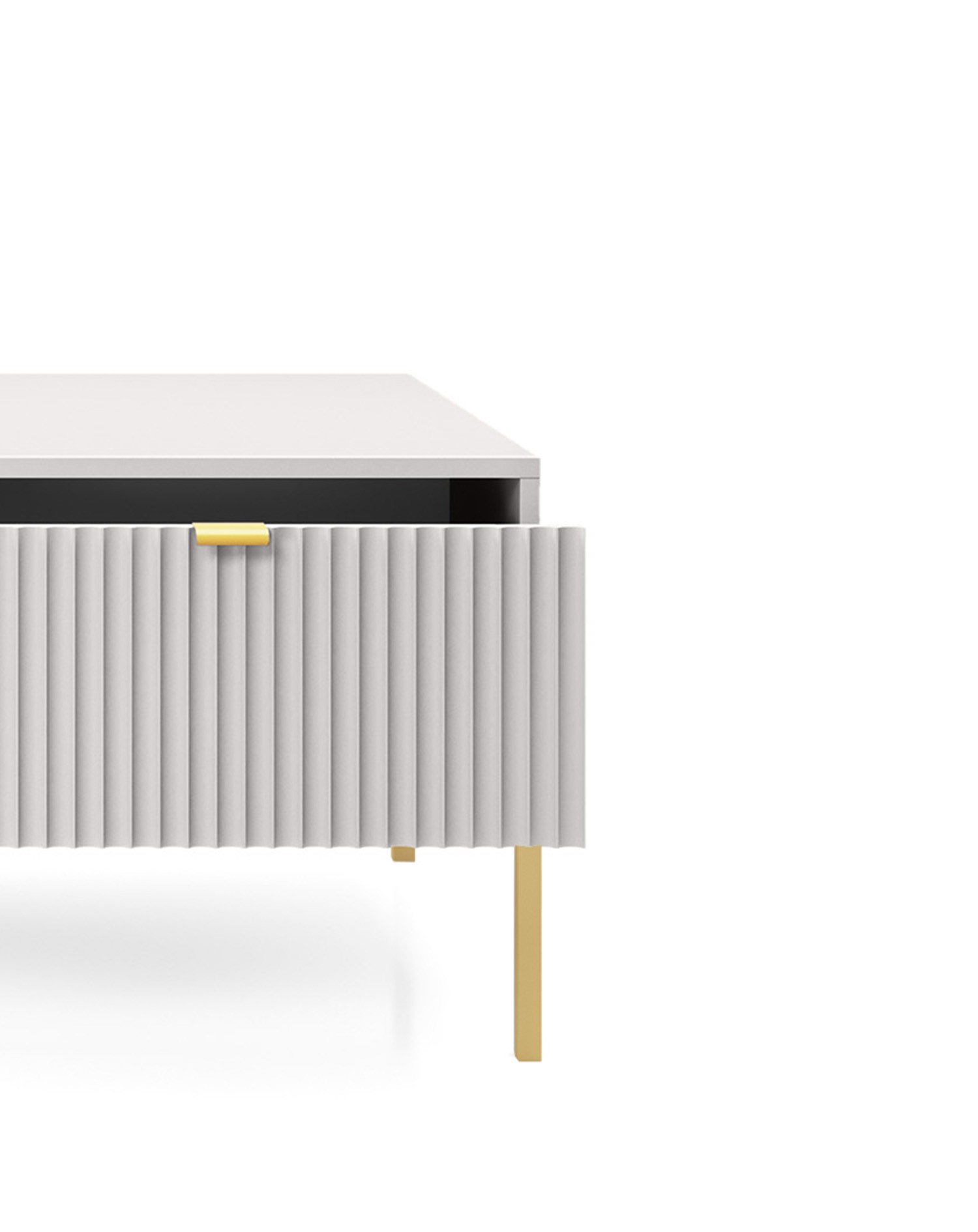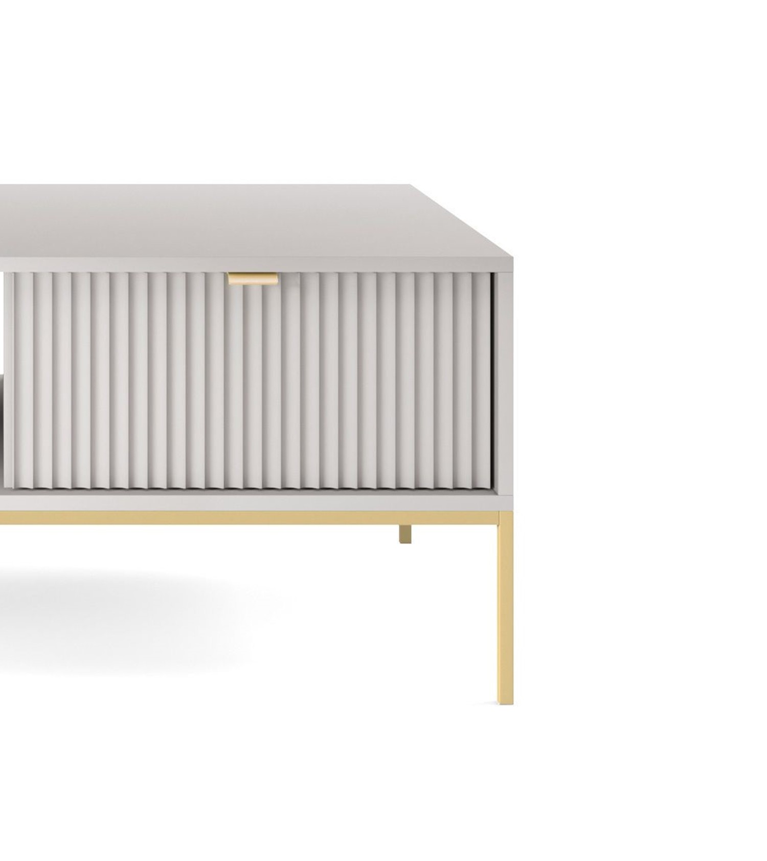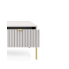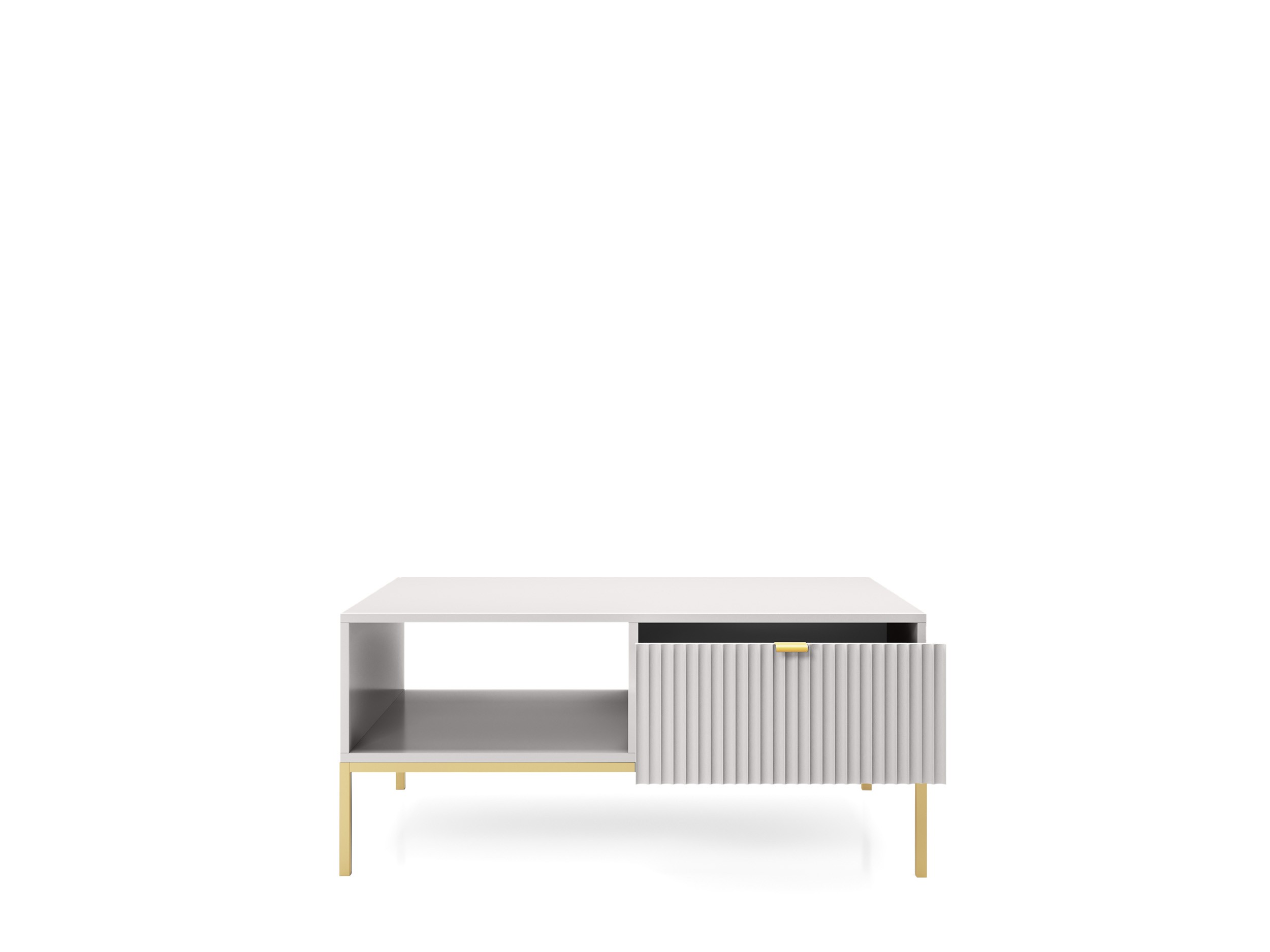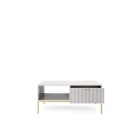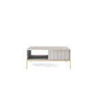 Stolik kawowy NAYA to połączenie elegancji, funkcjonalności i nowoczesnego designu. Dzięki przestronnemu blatowi oraz praktycznej szufladzie doskonale sprawdzi się w salonie, biurze lub stylowej przestrzeni recepcyjnej. Nowoczesna kolorystyka w zestawieniu ze złotym uchwytem nadaje meblowi luksusowego i ponadczasowego charakteru.