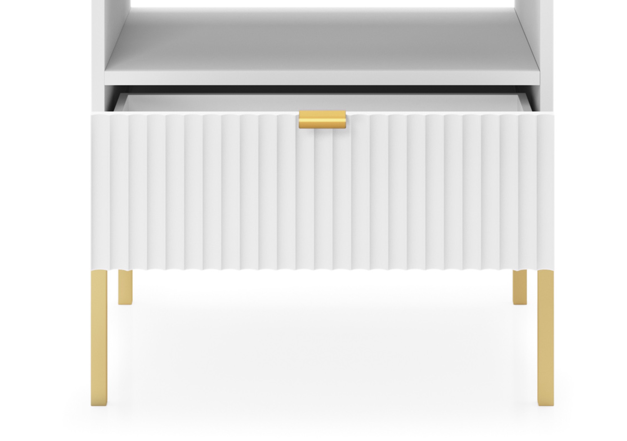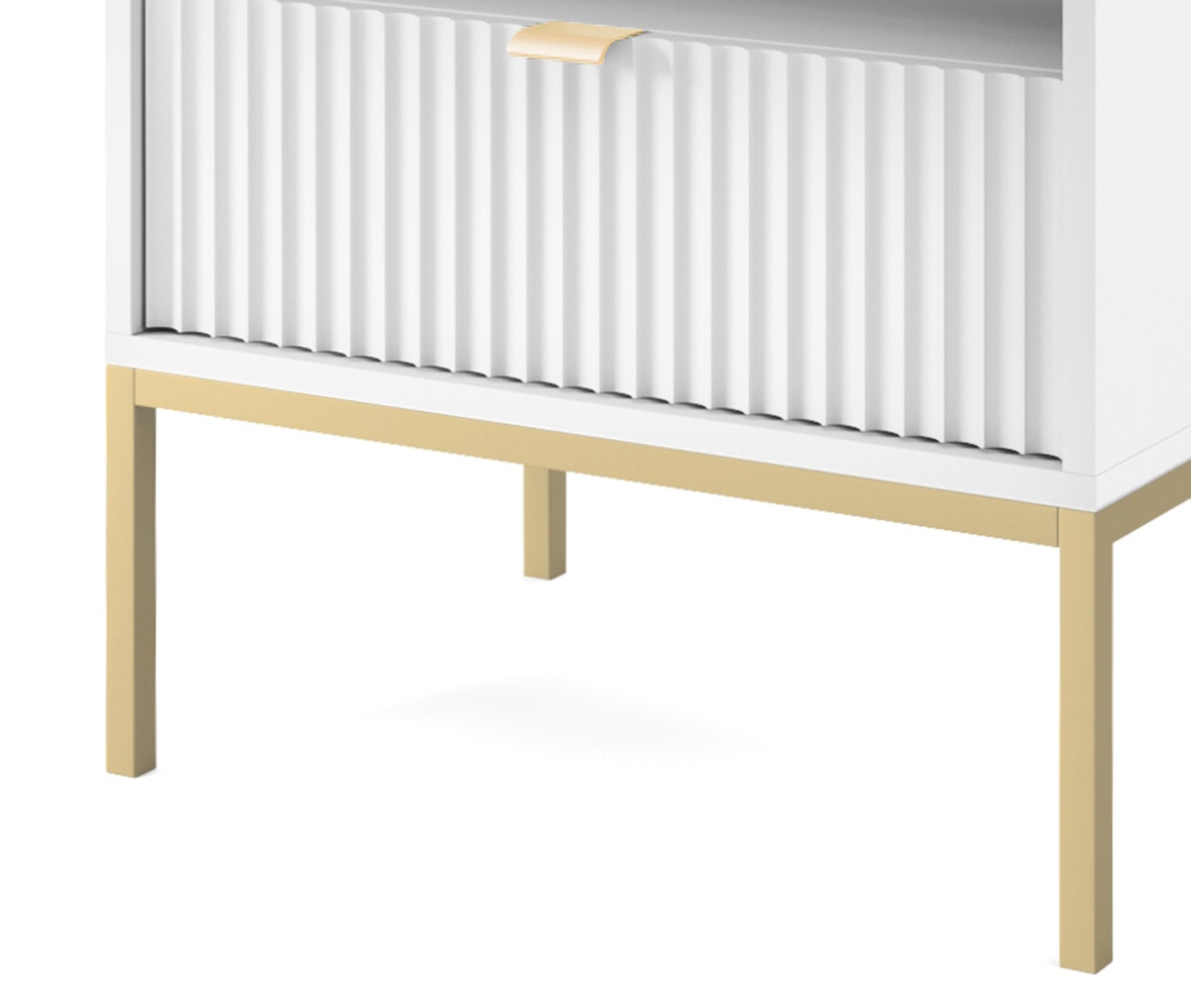 Szafka nocna NAYA 54 cm – ze złotym uchwytem i ryflowanym frontem
