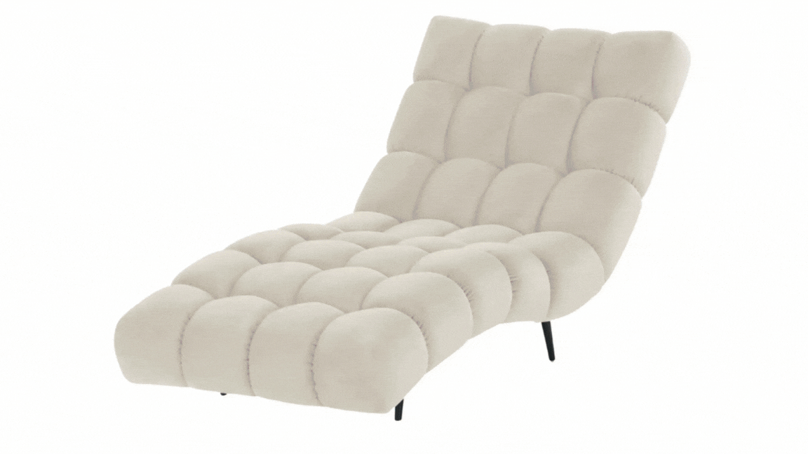 Solidne, czarne nogi nadają całości ponadczasowego charakteru i stabilności, a wykończenie tylnej części tą samą tkaniną sprawia, że szezlong jest meblem wolnostojącym, który prezentuje się efektownie z każdej strony.