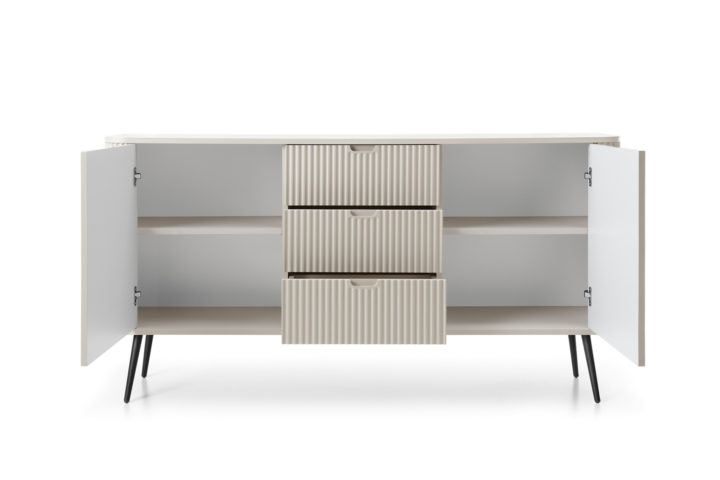 • Nowoczesna szeroka komoda z dekoracyjnymi ryflowaniami