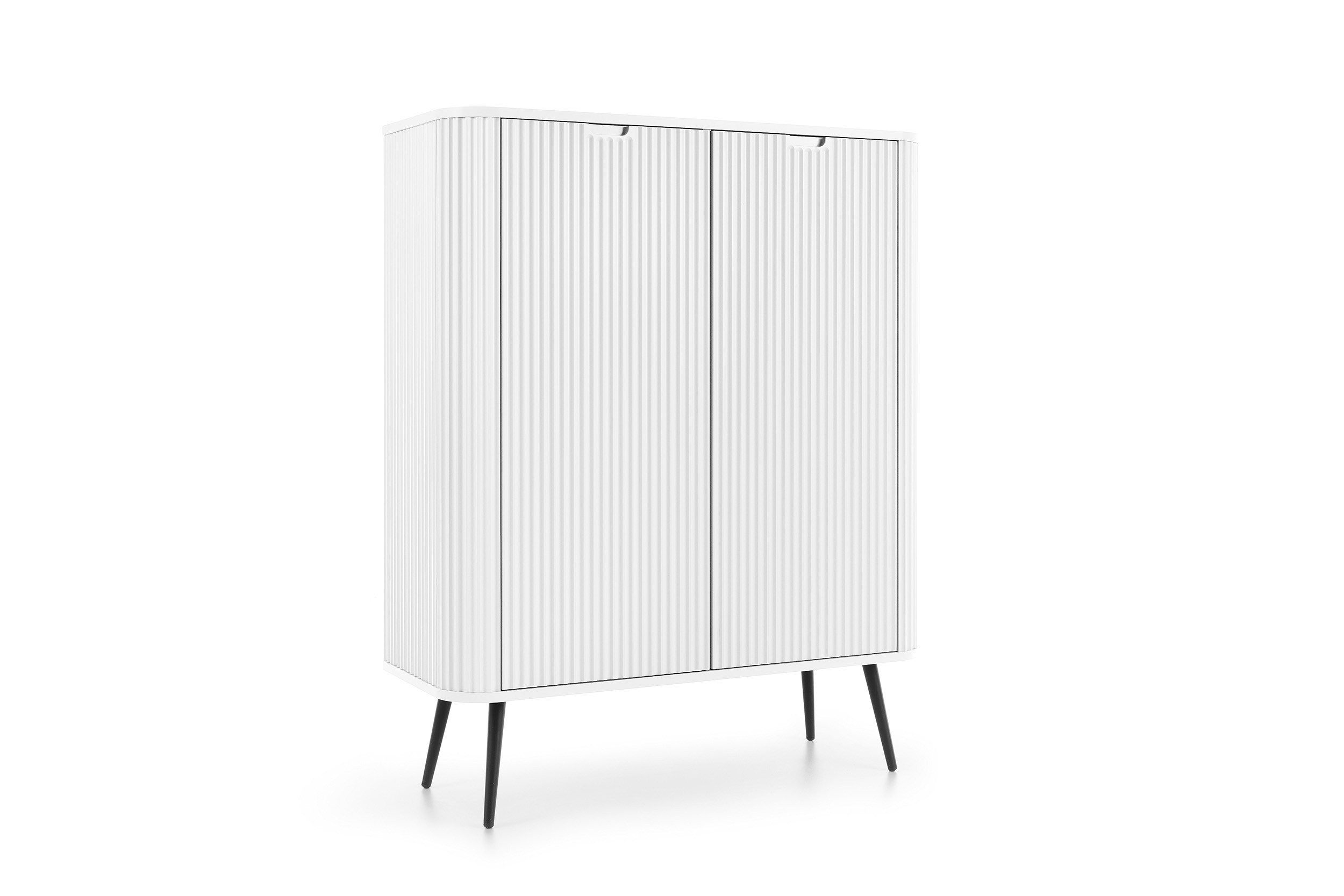 • Nowoczesna wysoka komoda z dekoracyjnymi ryflowaniami