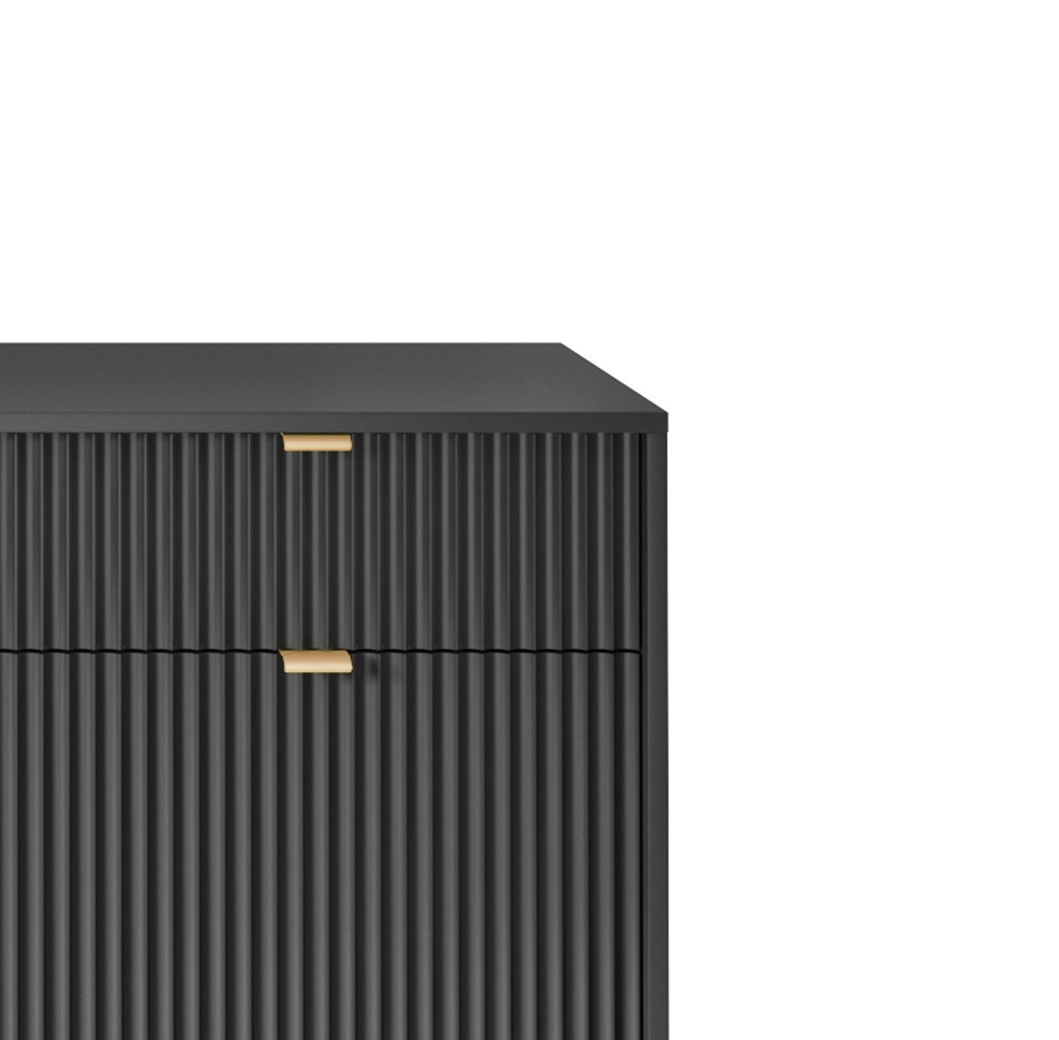 Duża ryflowana komoda NAYA to idealne połączenie nowoczesnego designu, funkcjonalności oraz luksusowych detali. Elegancka matowa struktura w zestawieniu ze złotymi akcentami sprawia, że mebel staje się wyrazistą ozdobą salonu, przedpokoju lub biura. Przemyślany układ wnętrza zapewnia dużo miejsca do przechowywania, a solidne wykonanie gwarantuje trwałość na lata.