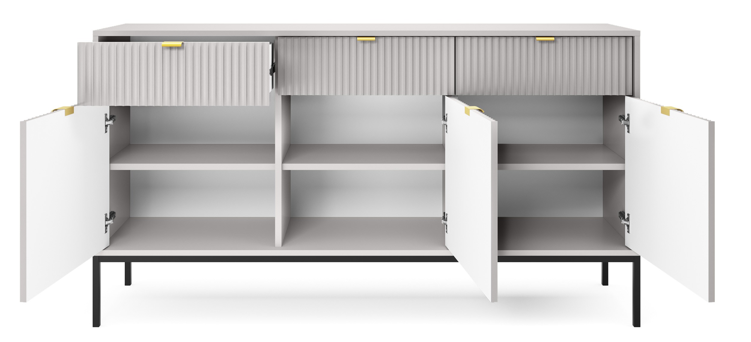 Duża komoda NAYA 154 cm – Ryflowana ze złotymi akcentami