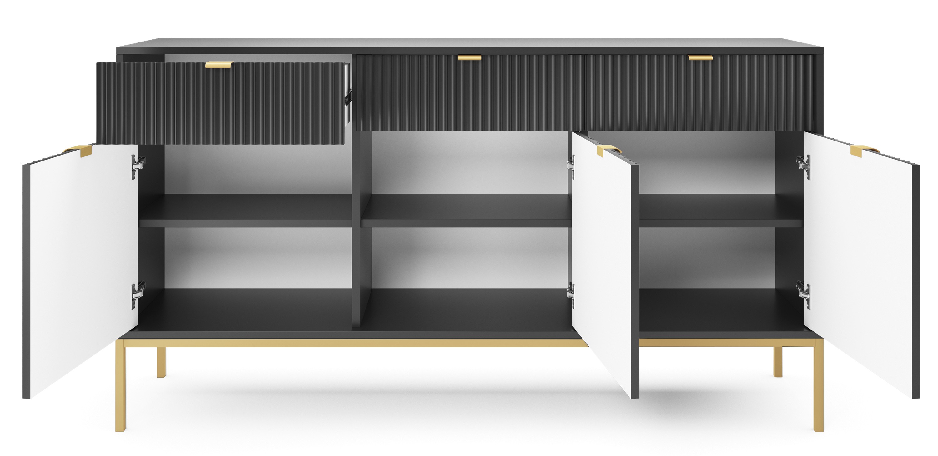 Duża komoda NAYA 154 cm – Ryflowana ze złotymi akcentami