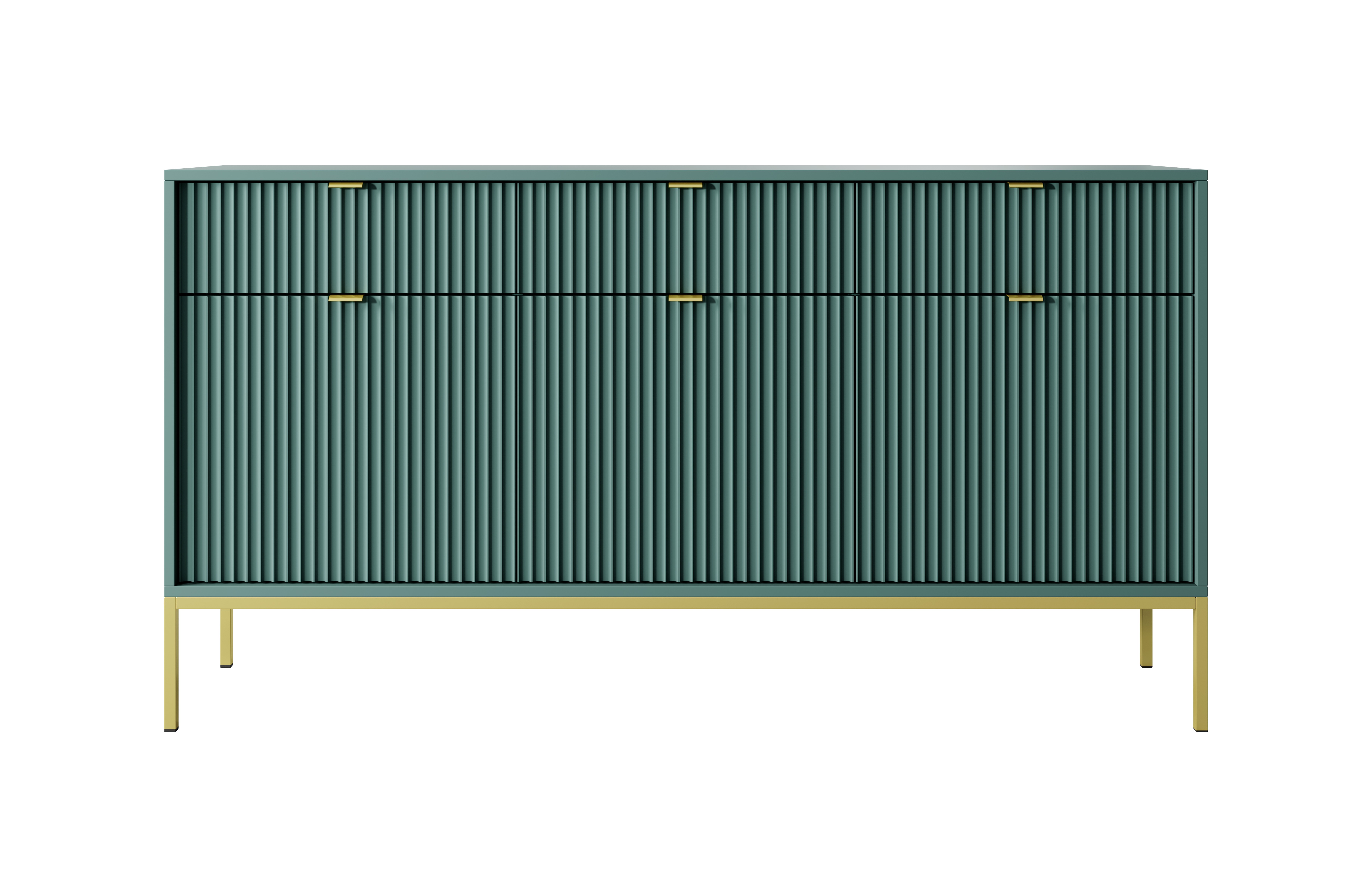 Duża komoda NAYA 154 cm – Ryflowana ze złotymi akcentami