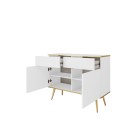 Komoda ORIANA 107 cm to nowoczesny mebel łączący stylowy design z praktyczną funkcjonalnością. Dzięki dopracowanym detalom oraz smukłym metalowym nogom doskonale wpisuje się w aranżacje: