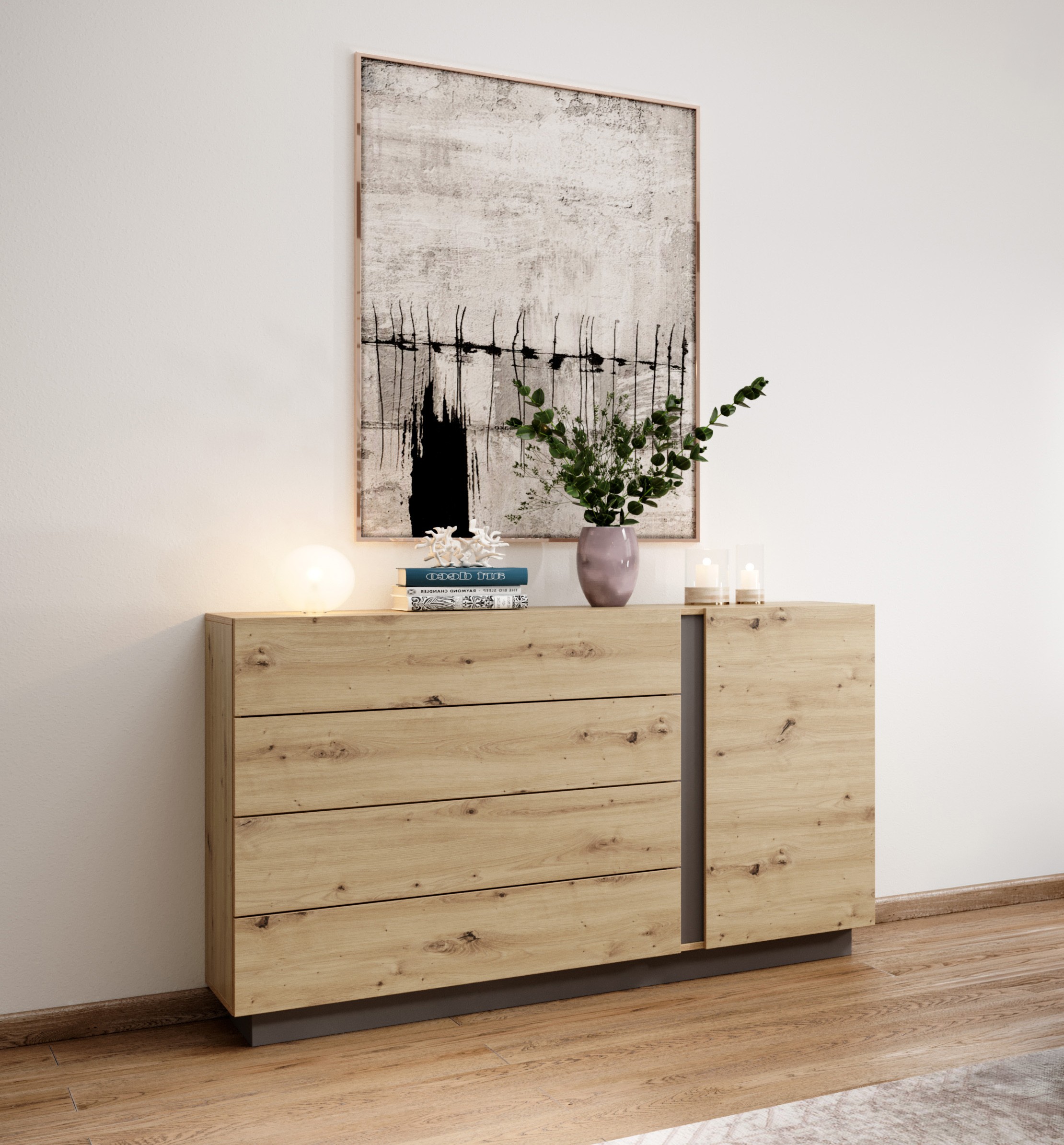 RACO Komoda 138 D4S Dąb Artisan – 4 Szuflady, Nowoczesna
