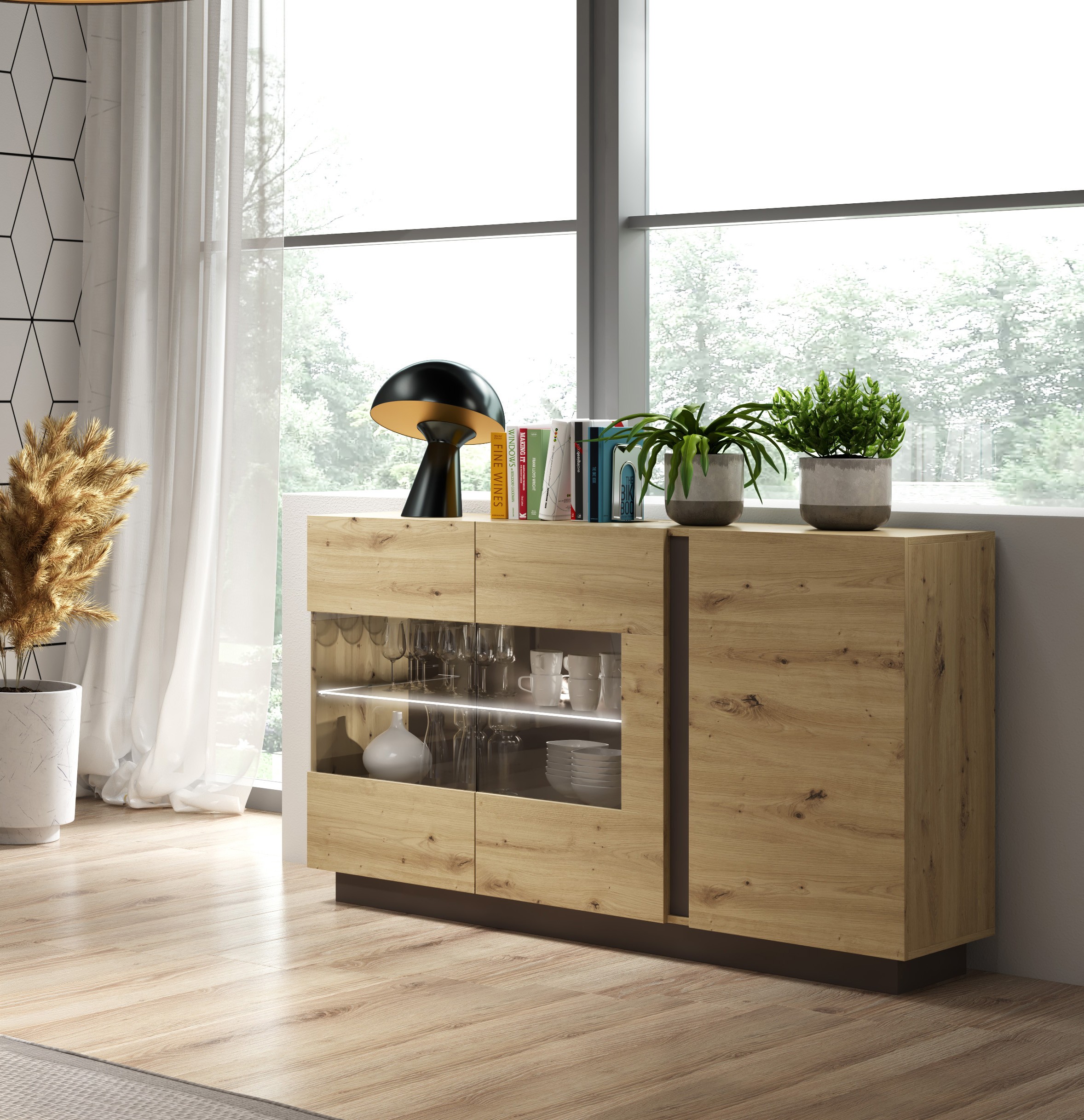 RACO Witryna 138 Dąb Artisan Komoda z Oświetleniem LED