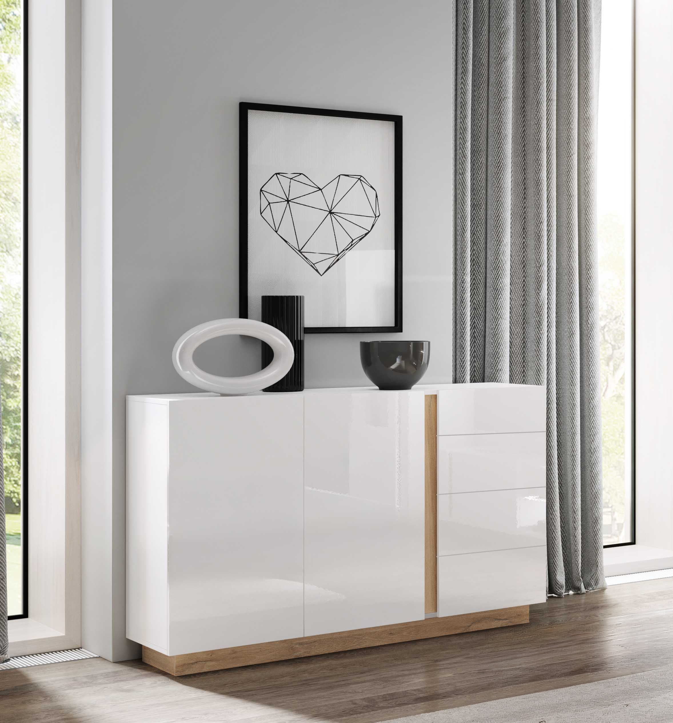 RACO Komoda 138 2D4S to nowoczesny i elegancki mebel, który doskonale sprawdzi się w salonie, sypialni lub pokoju dziennym. Przemyślana konstrukcja łącząca szafki oraz szuflady zapewnia dużą funkcjonalność i wygodę codziennego użytkowania.