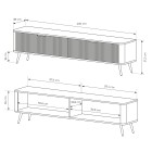 Szafka o szerokości 200 cm wyposażona jest w dwie pojemne szafki, które zapewniają wygodne miejsce do przechowywania sprzętu RTV, akcesoriów oraz innych przedmiotów codziennego użytku, pomagając utrzymać porządek w strefie wypoczynkowej.