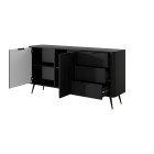 Czarna Komoda LETNA 3 szuflady + drzwi – komoda z półkami do salonu i sypialni na wysokich nóżkach
