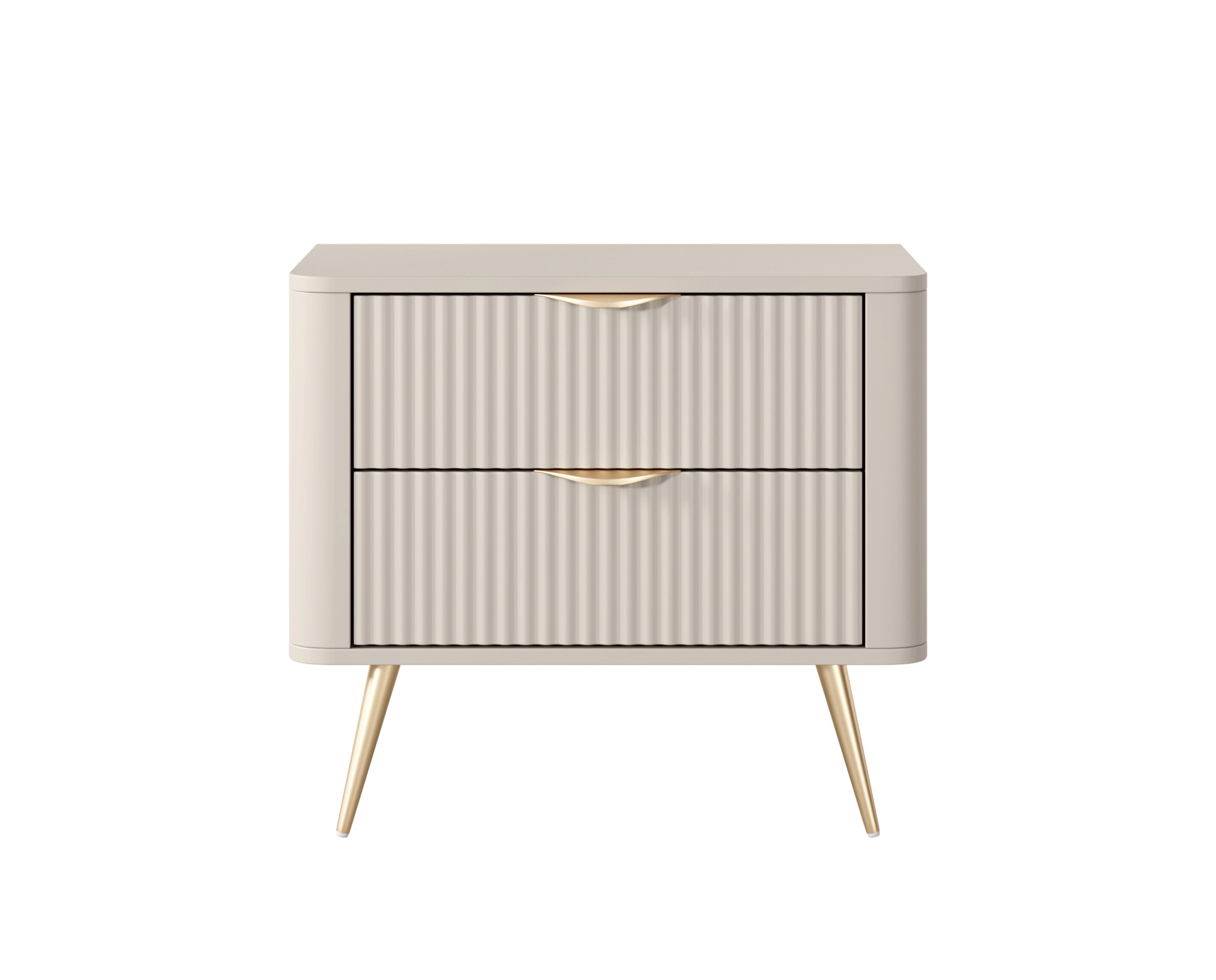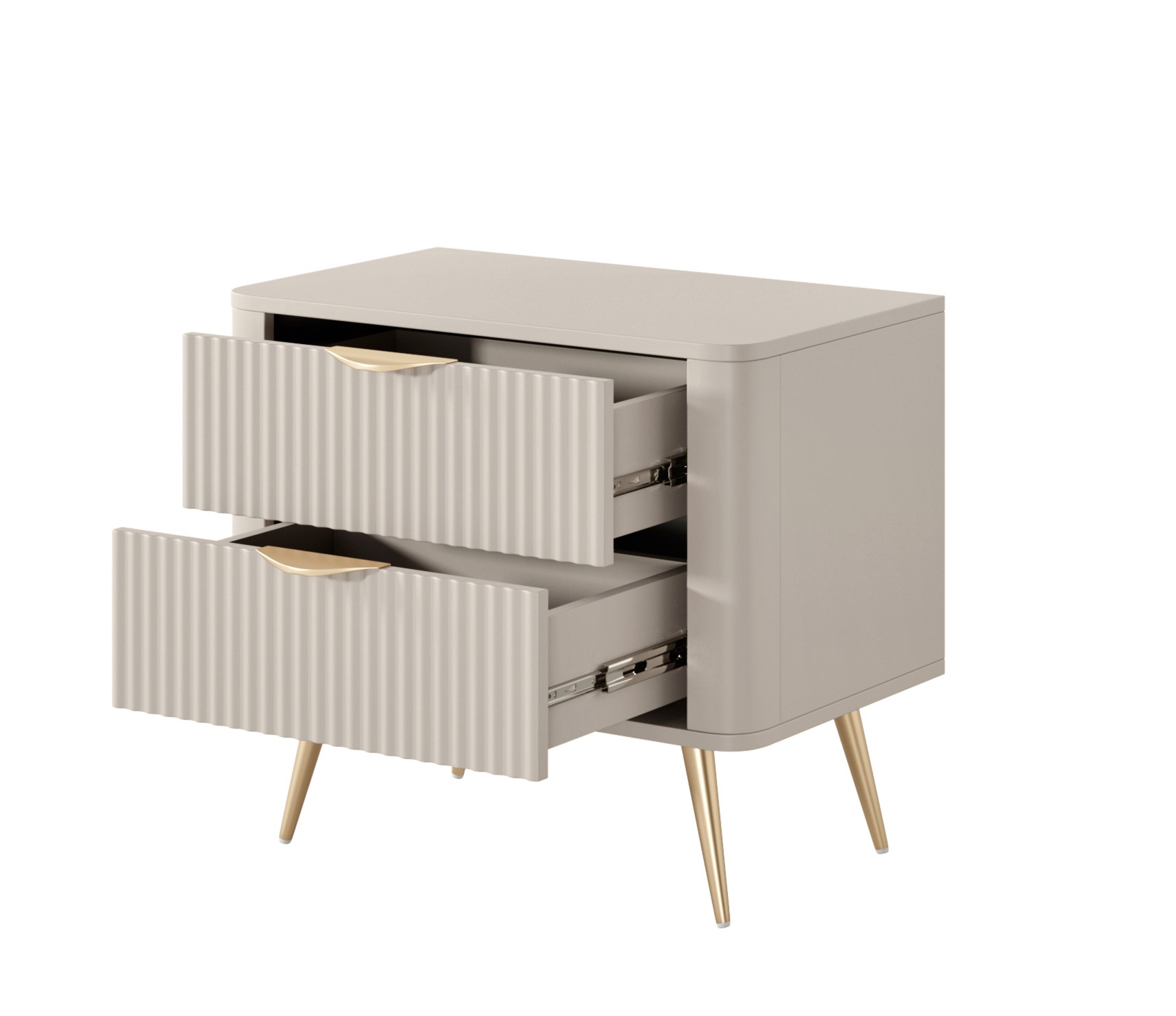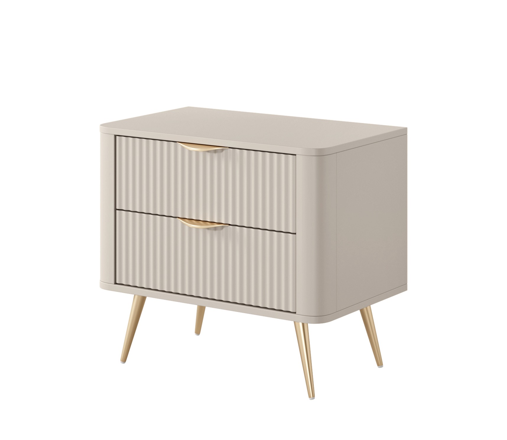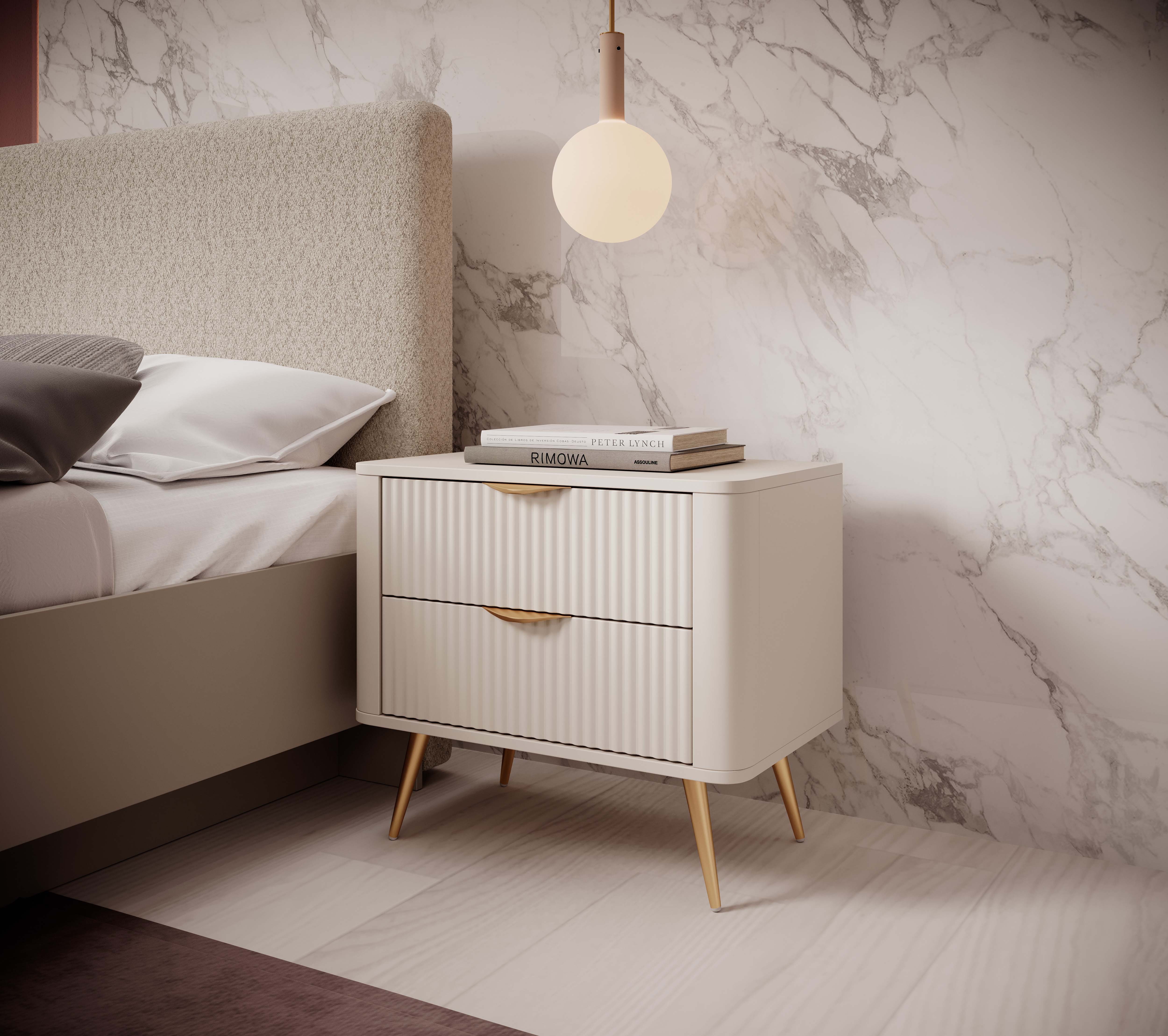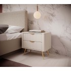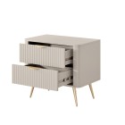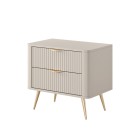 Beżowy Stolik/Szafka nocna LETNA 2 szuflady frezowane fronty metalowe nogi do sypialni