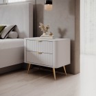 Beżowy Stolik/Szafka nocna LETNA 2 szuflady frezowane fronty metalowe nogi do sypialni