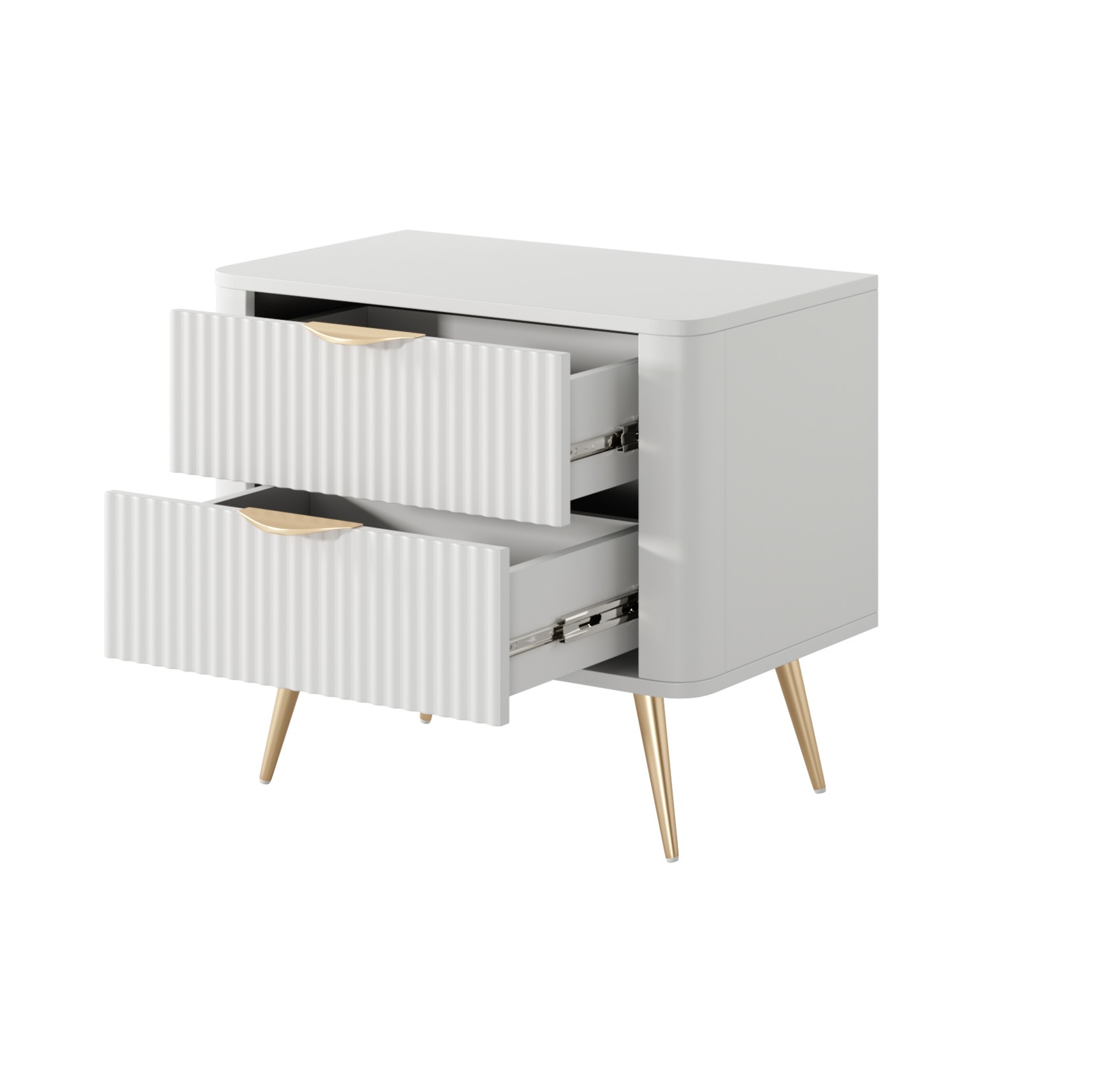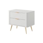 Biały Stolik/Szafka nocna LETNA 2 szuflady frezowane fronty metalowe nogi do sypialni