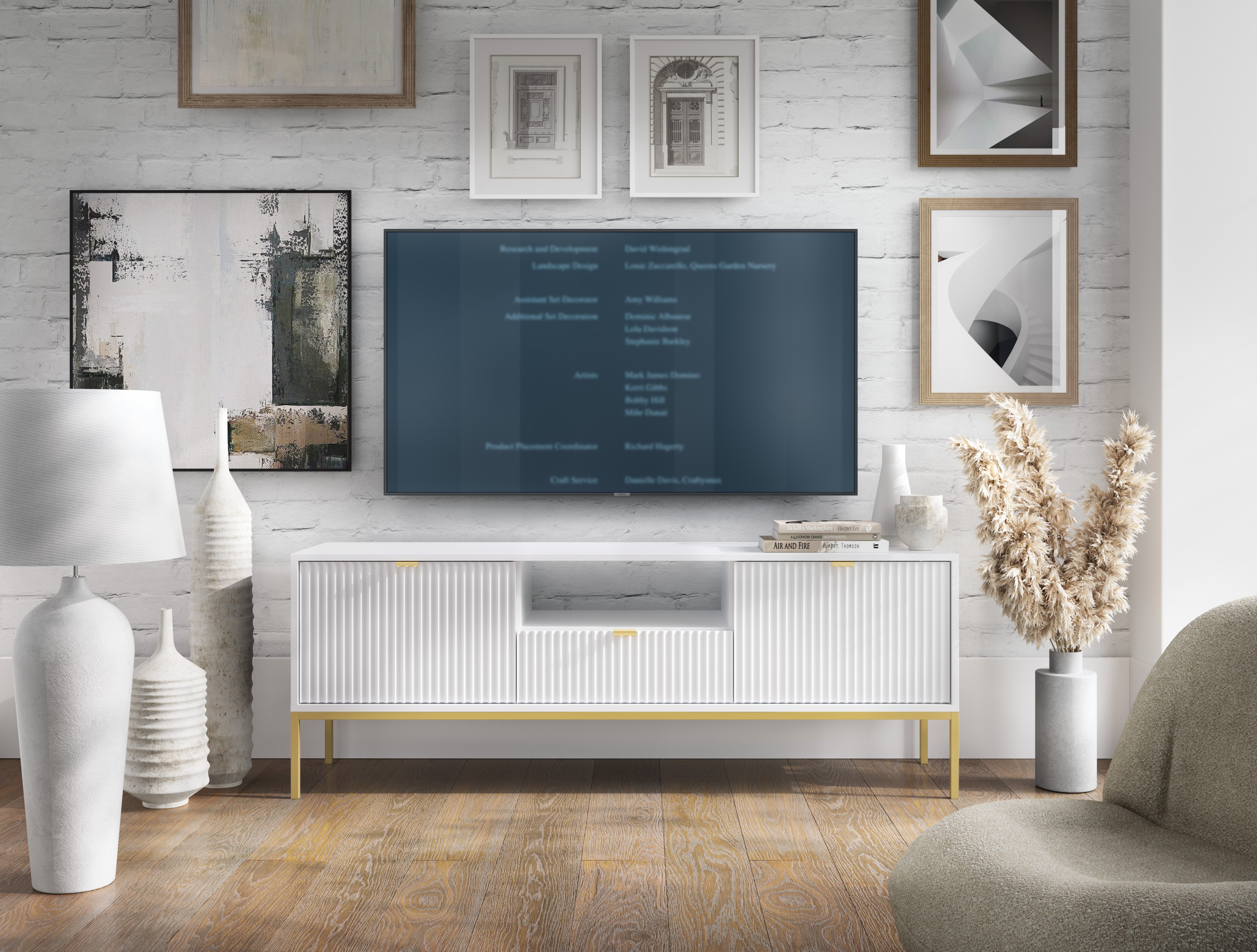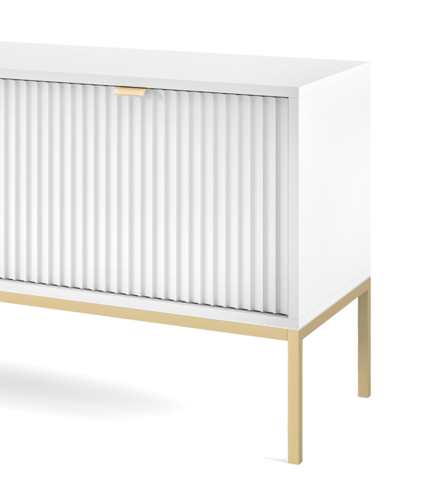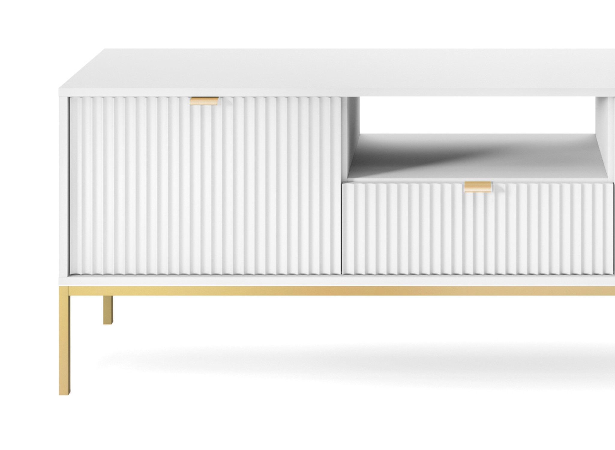 Szafka RTV NAYA 154 cm – Ryflowany front i złote uchwyty w nowoczesnym stylu