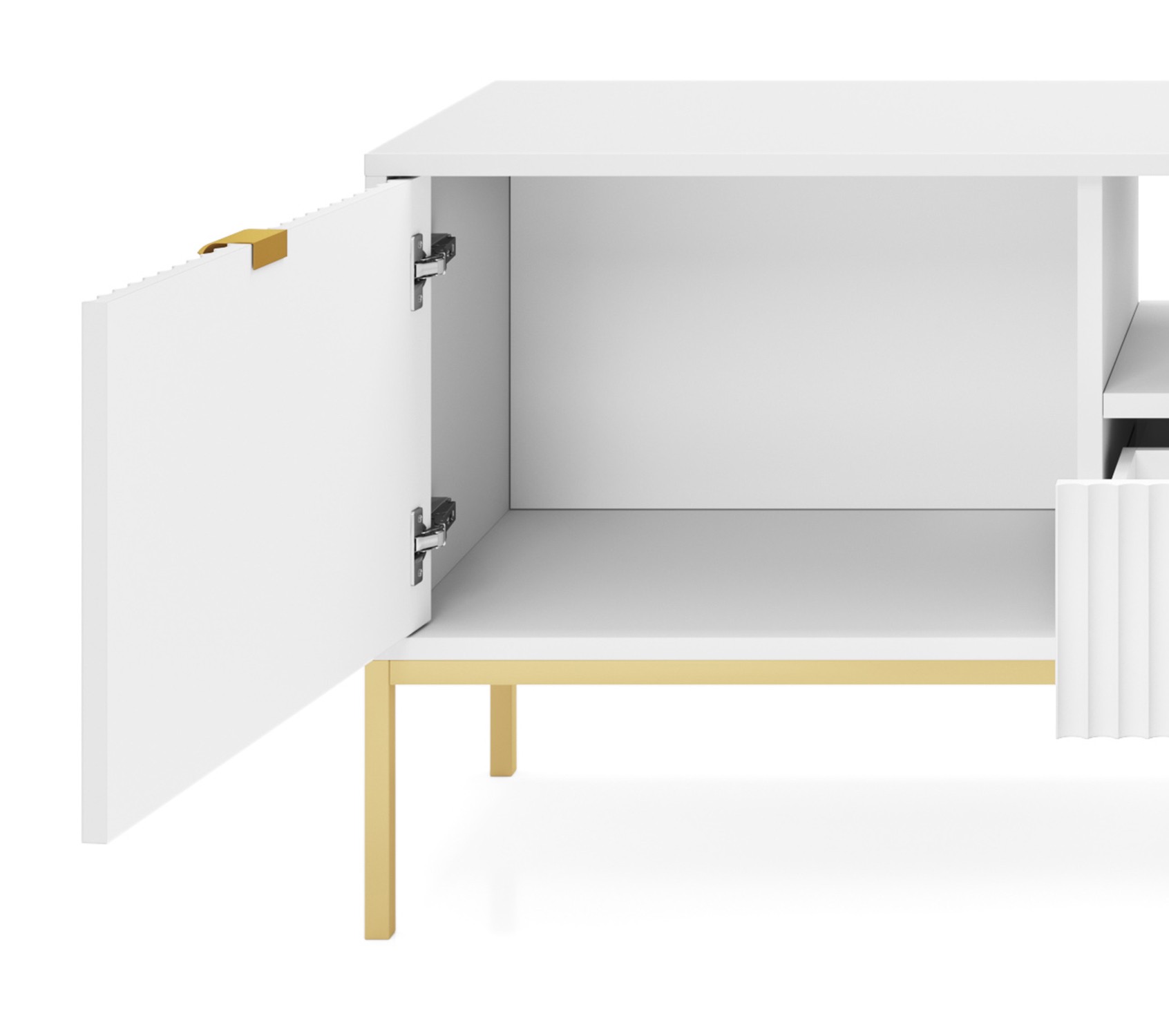NAYA Szafka RTV 154 biała | złoty stelaż