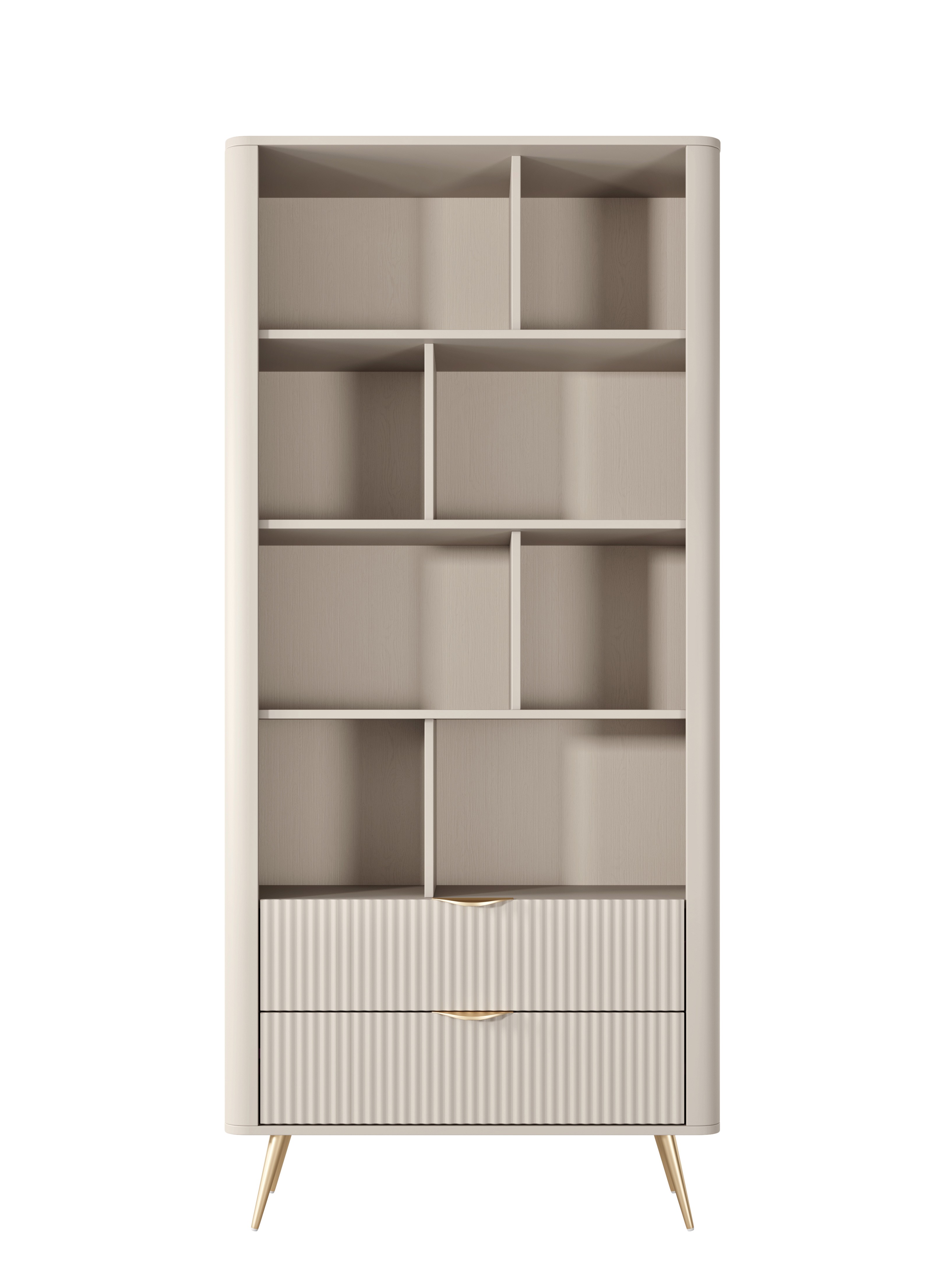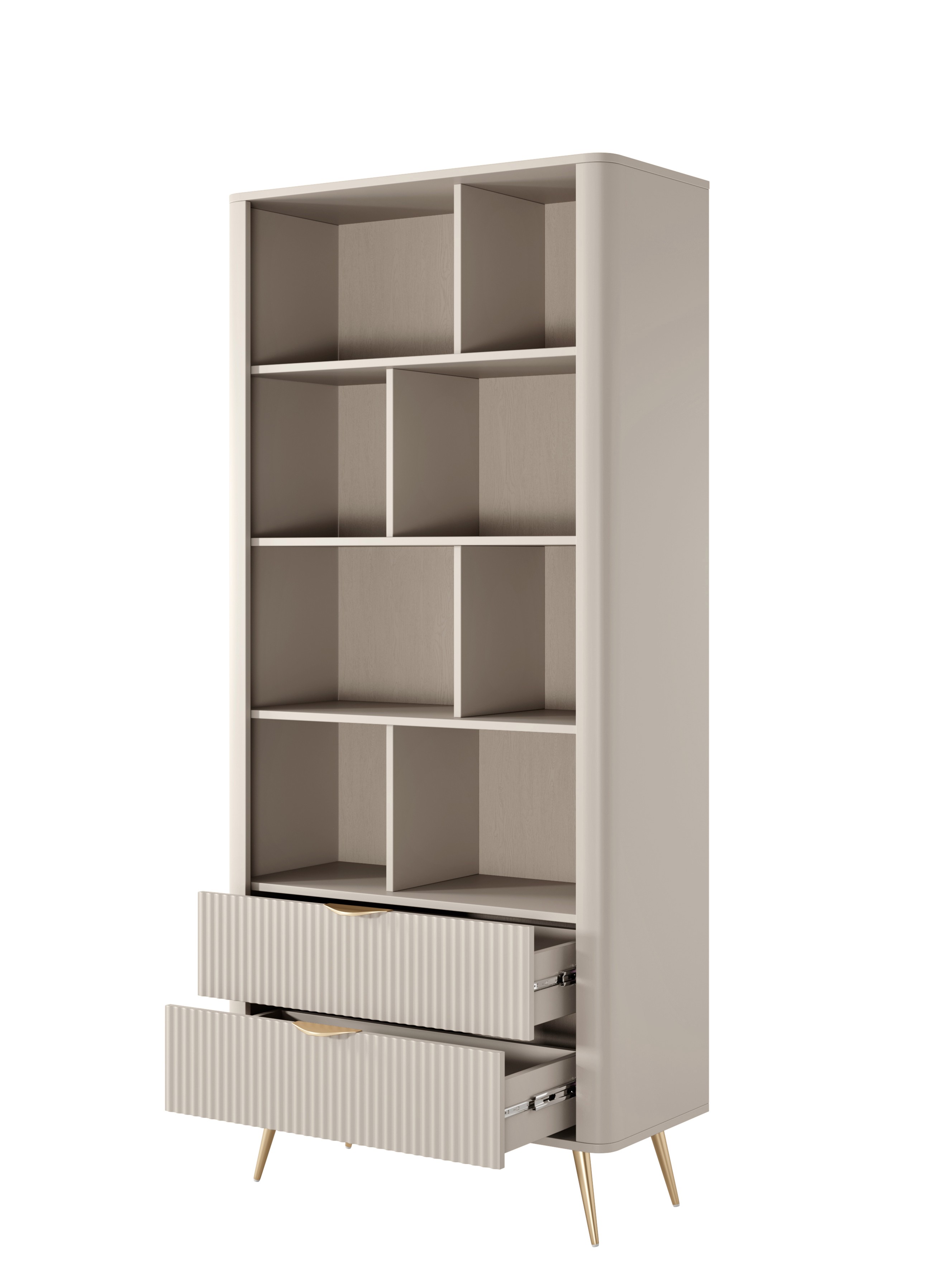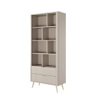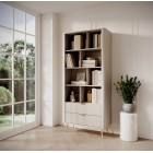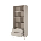 Beżowy Regał LETNA z szufladami – regał z półkami i 2 szufladami do salonu i biura na wysokich nóżkach