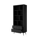 Czarny Regał LETNA z szufladami – regał z półkami i 2 szufladami do salonu i biura na wysokich nóżkach