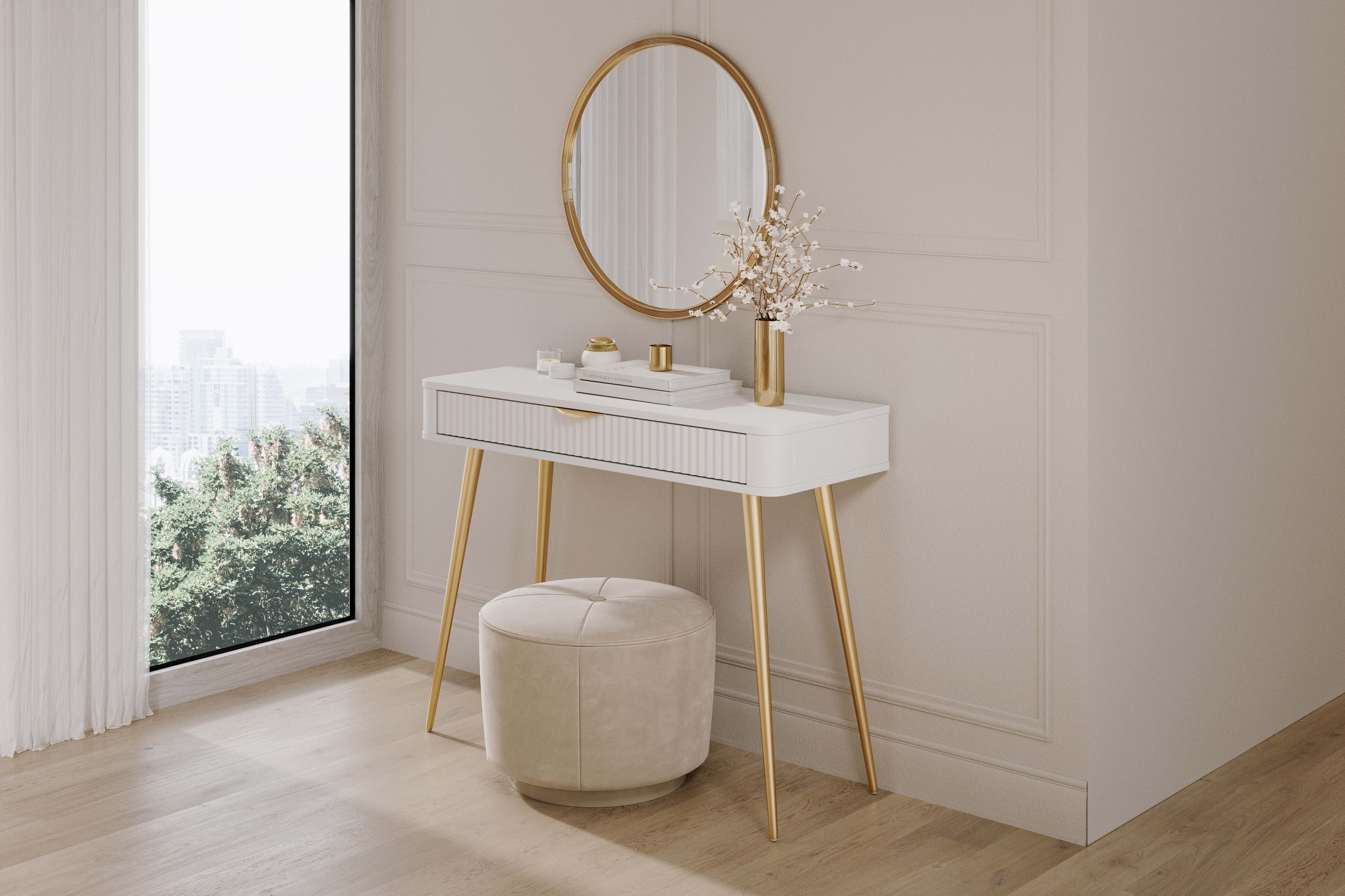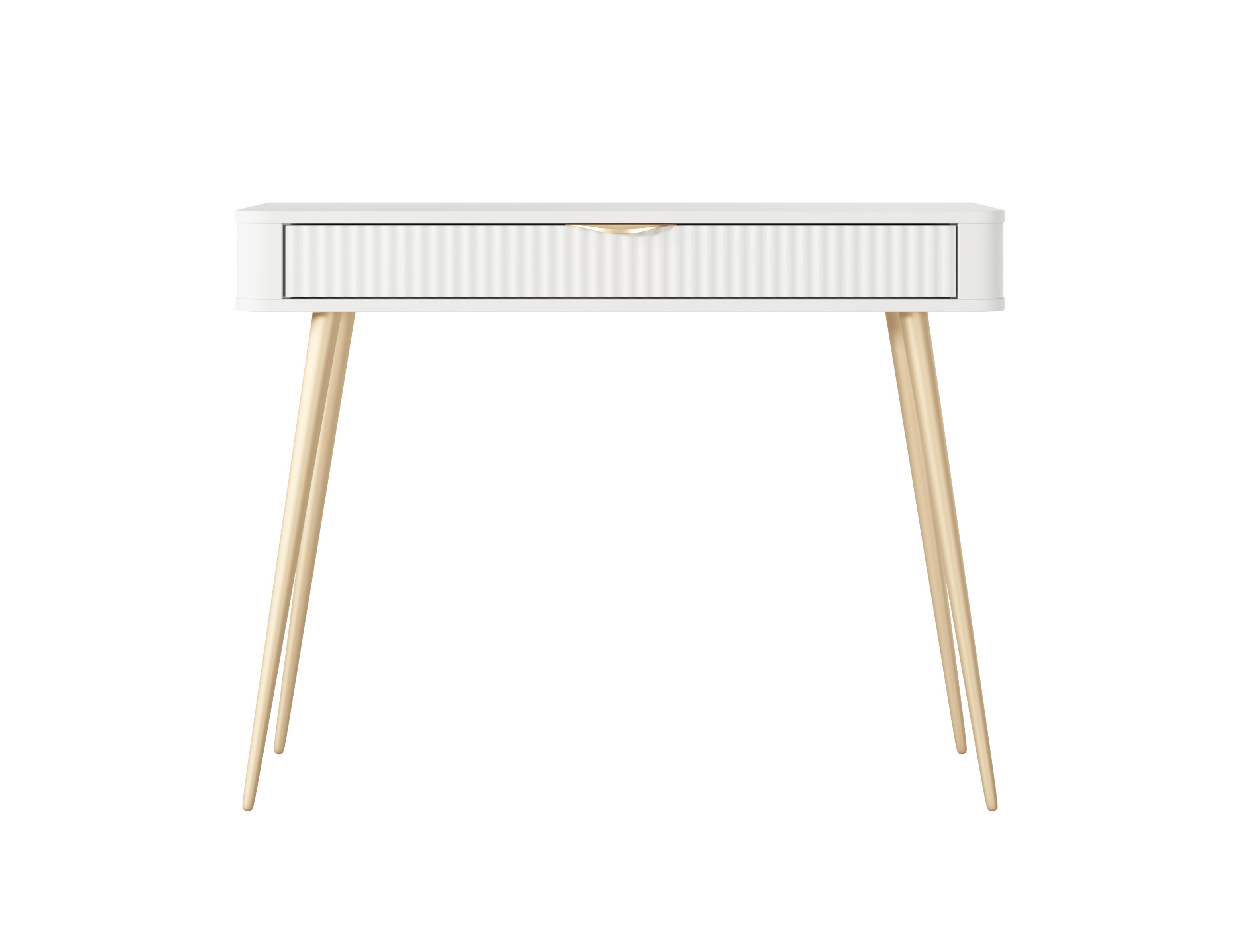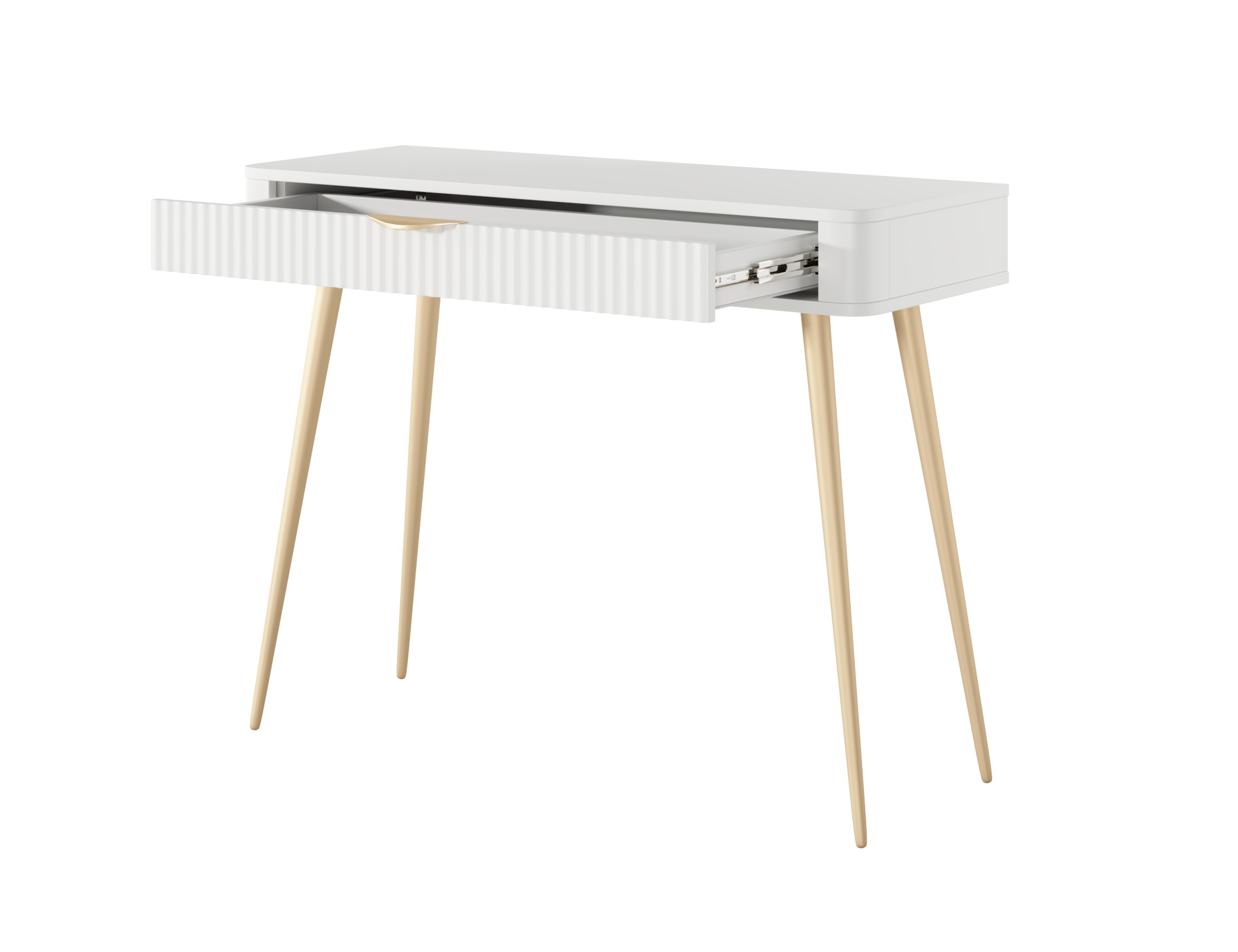 Biała Toaletka LETNA z szufladą ryflowane fronty metalowe nogi do salonu sypialni przedpokoju