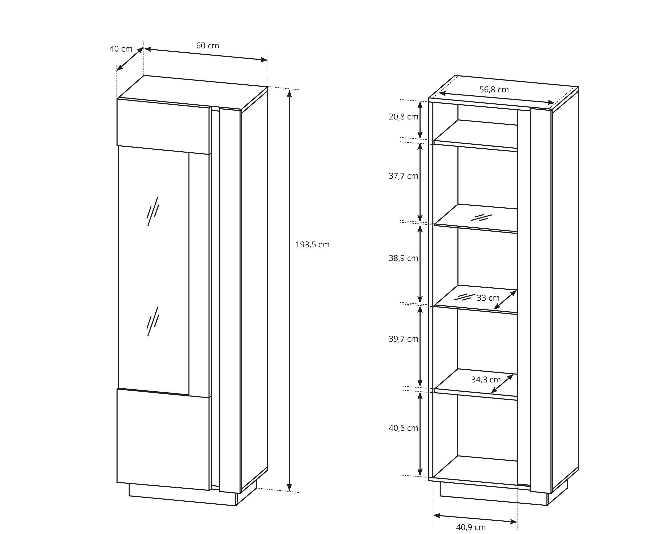 60x194x40 cm