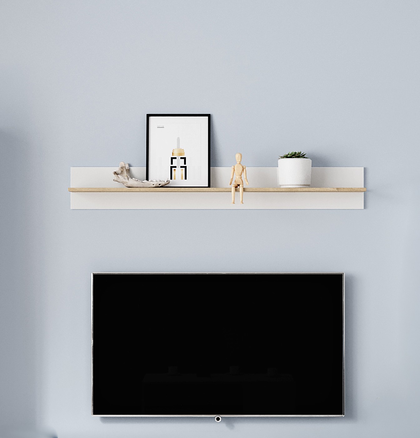 RACO Półka 138 to nowoczesny element wyposażenia wnętrza, który doskonale uzupełni aranżację salonu, sypialni lub pokoju dziennego. Minimalistyczna forma oraz eleganckie wykończenie sprawiają, że półka świetnie komponuje się z pozostałymi meblami z kolekcji, tworząc spójną i estetyczną przestrzeń.